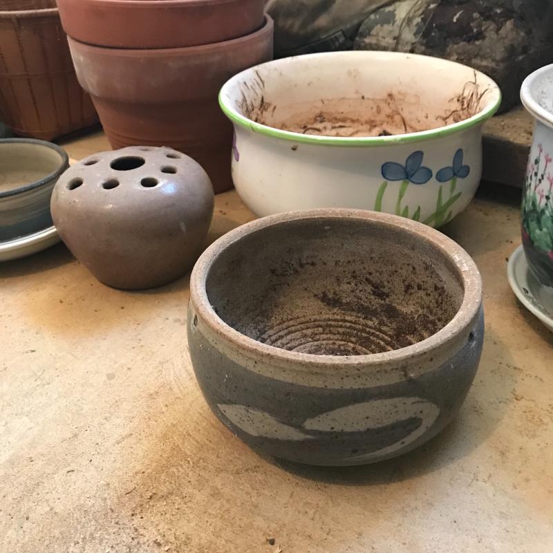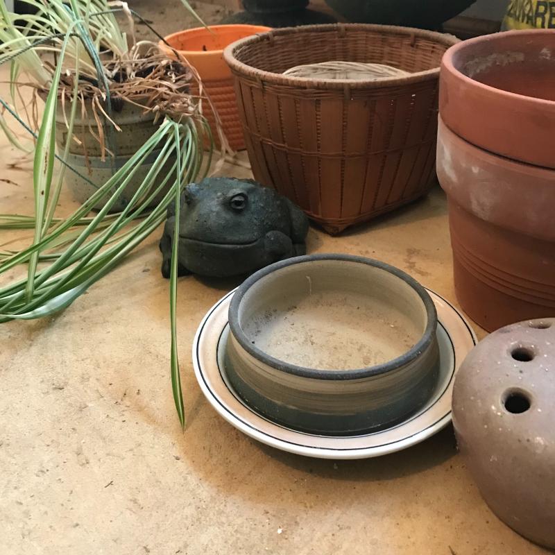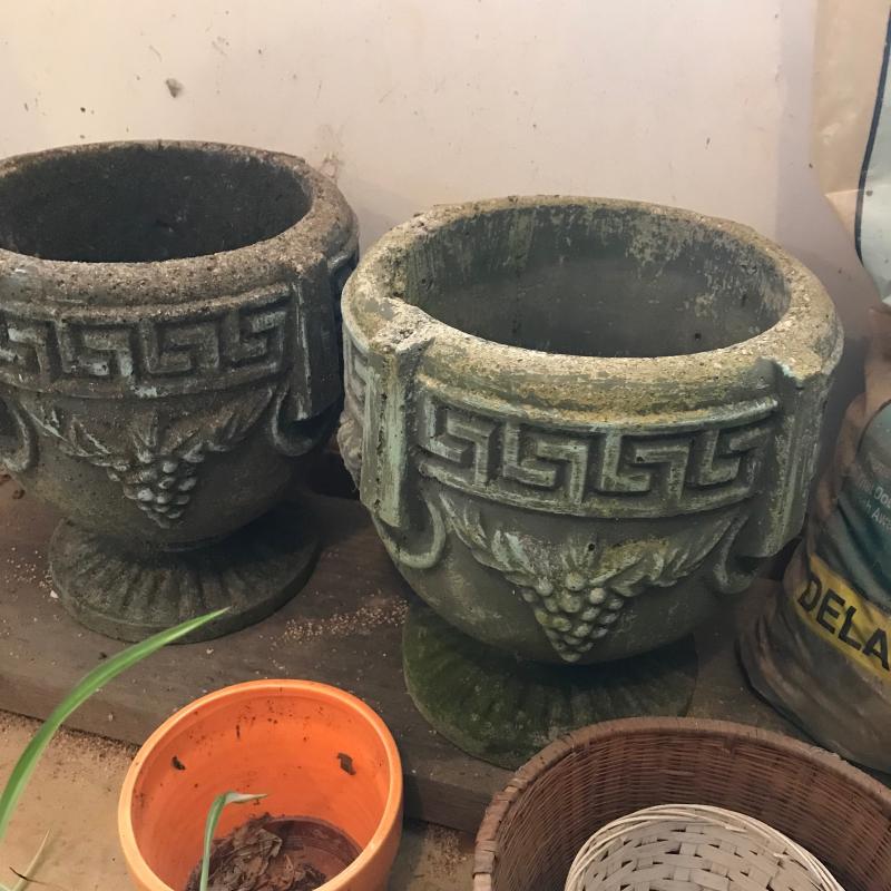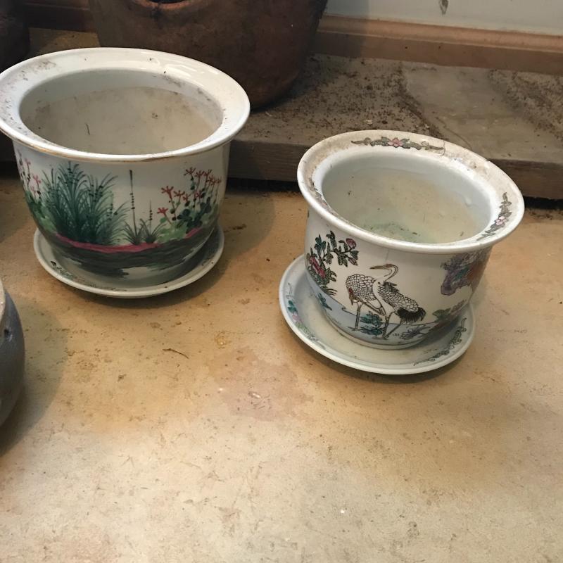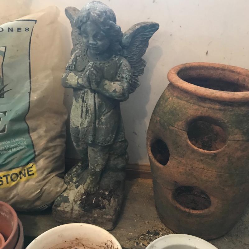 Lot of various planters ranging from Asian-style formal house to heavy concrete planter for outdoors. Praying angel statue stands 19” tall. Cannot guarantee plant will still be in good shape by pick up. This lot is available for local pickup in Flat Rock, NC only