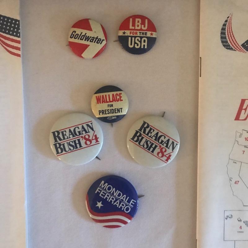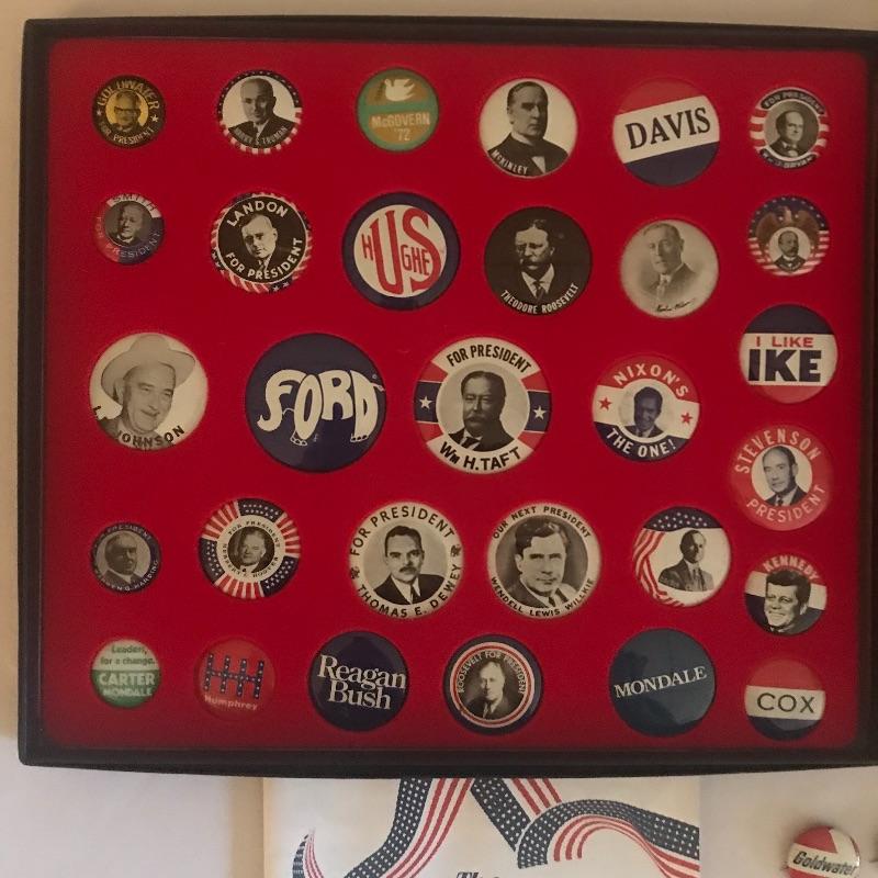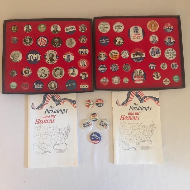 Two box sets of presidential buttons. This collection is varied and each box has a nice pamphlet enclosed with facts and dates. There are 6 extra buttons that are included in the lot that were not from either set. The collection is in great condition and would be great framed. Each box measures 9.5” x 11.5”. Shipping available.