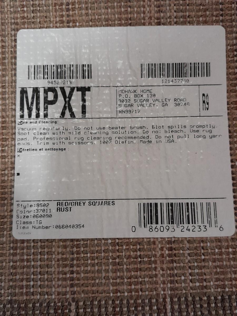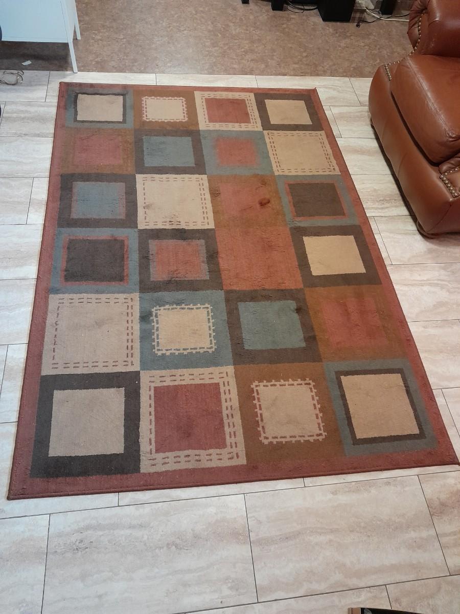RED / GREY SQUARES RUST COLORED 89" X 60" AREA RUG