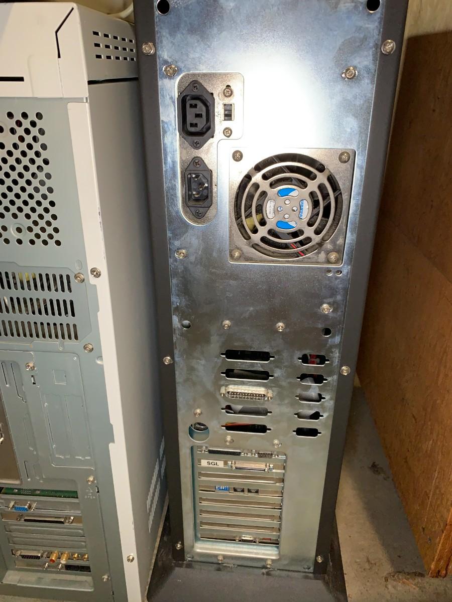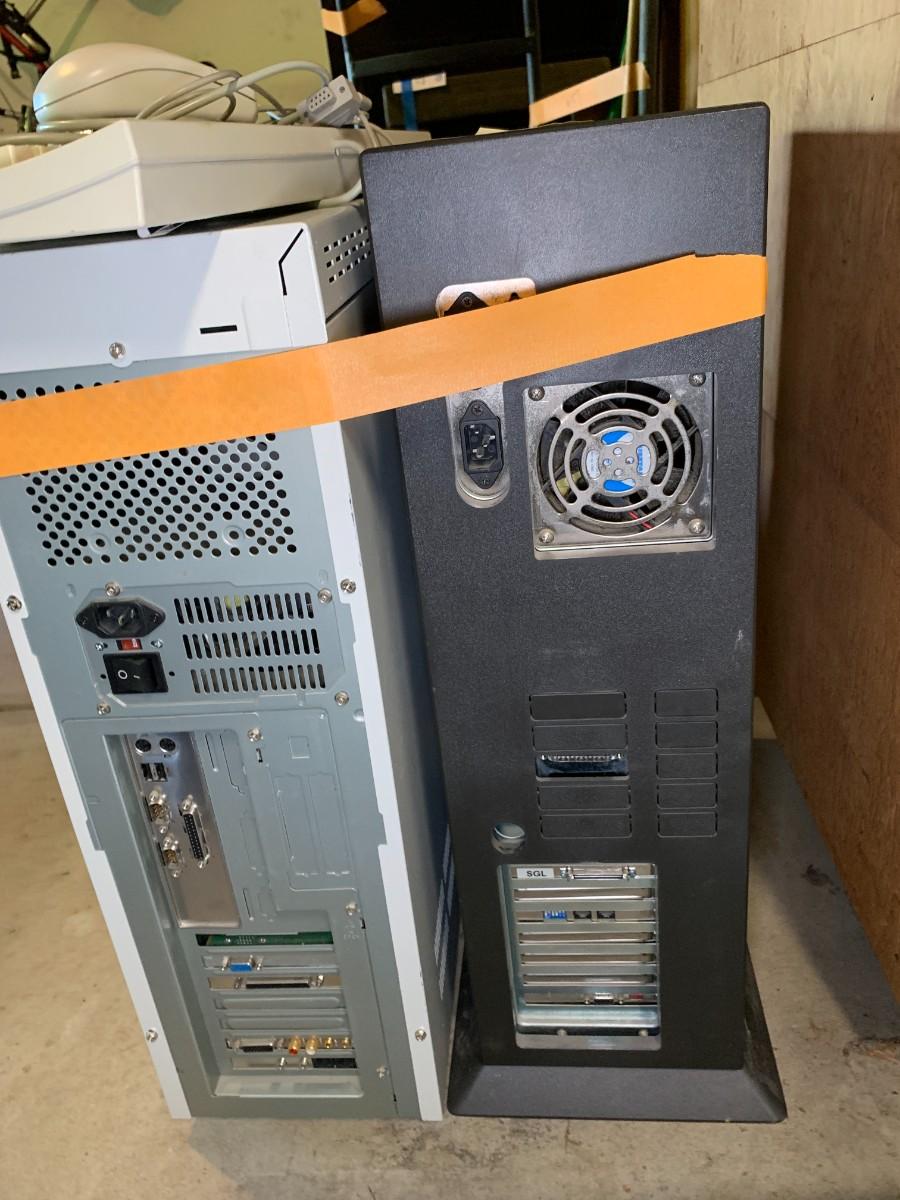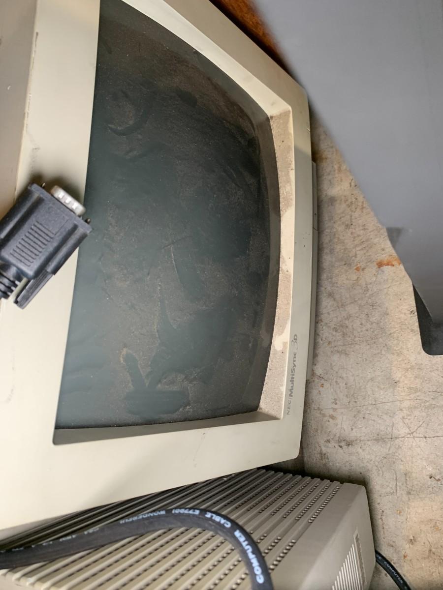 2 tall computer towers, have all inner workings except hard drive. 2 CRT monitors, great for set props, weight lifting and boat anchors. Keyboard and mouse included.