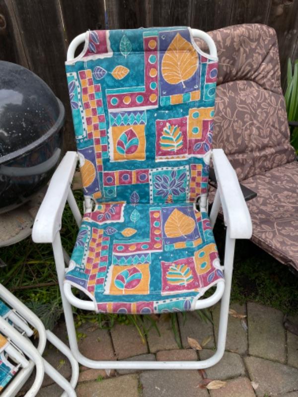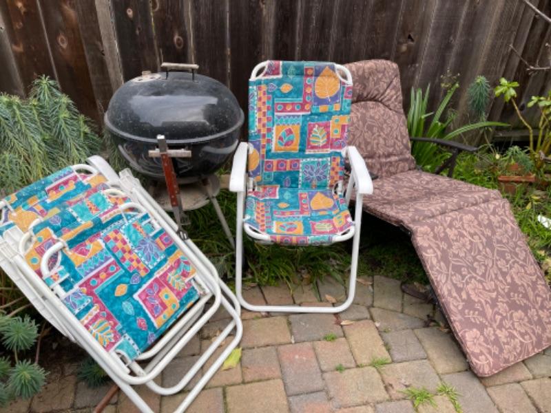 Lot 160. Weber BBQ, 4 folding chairs and one lounge chair-- Was $40 - - Now $20