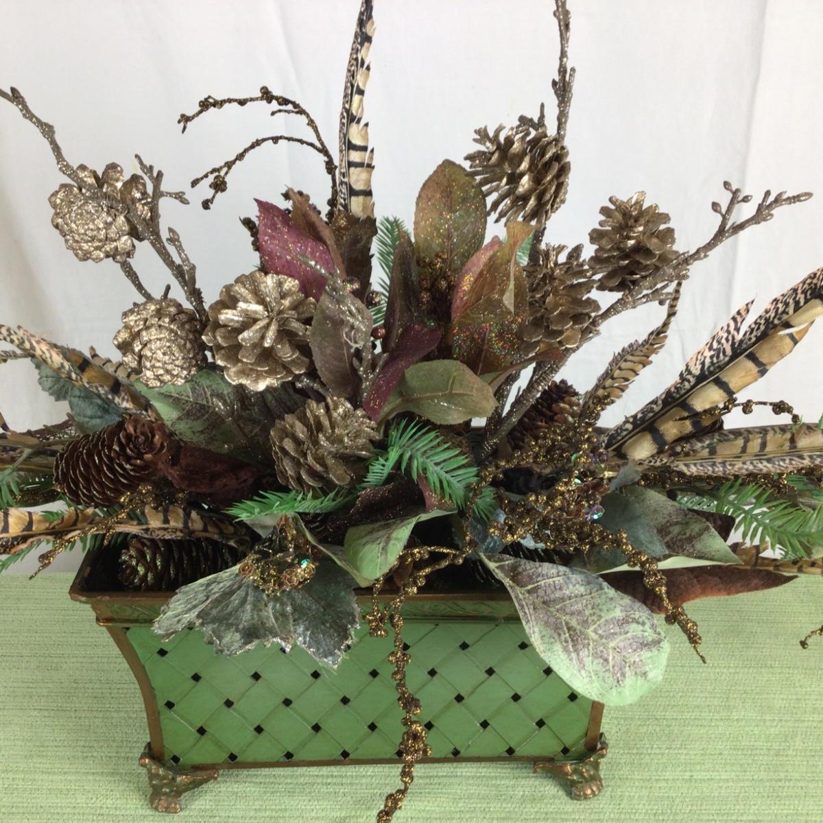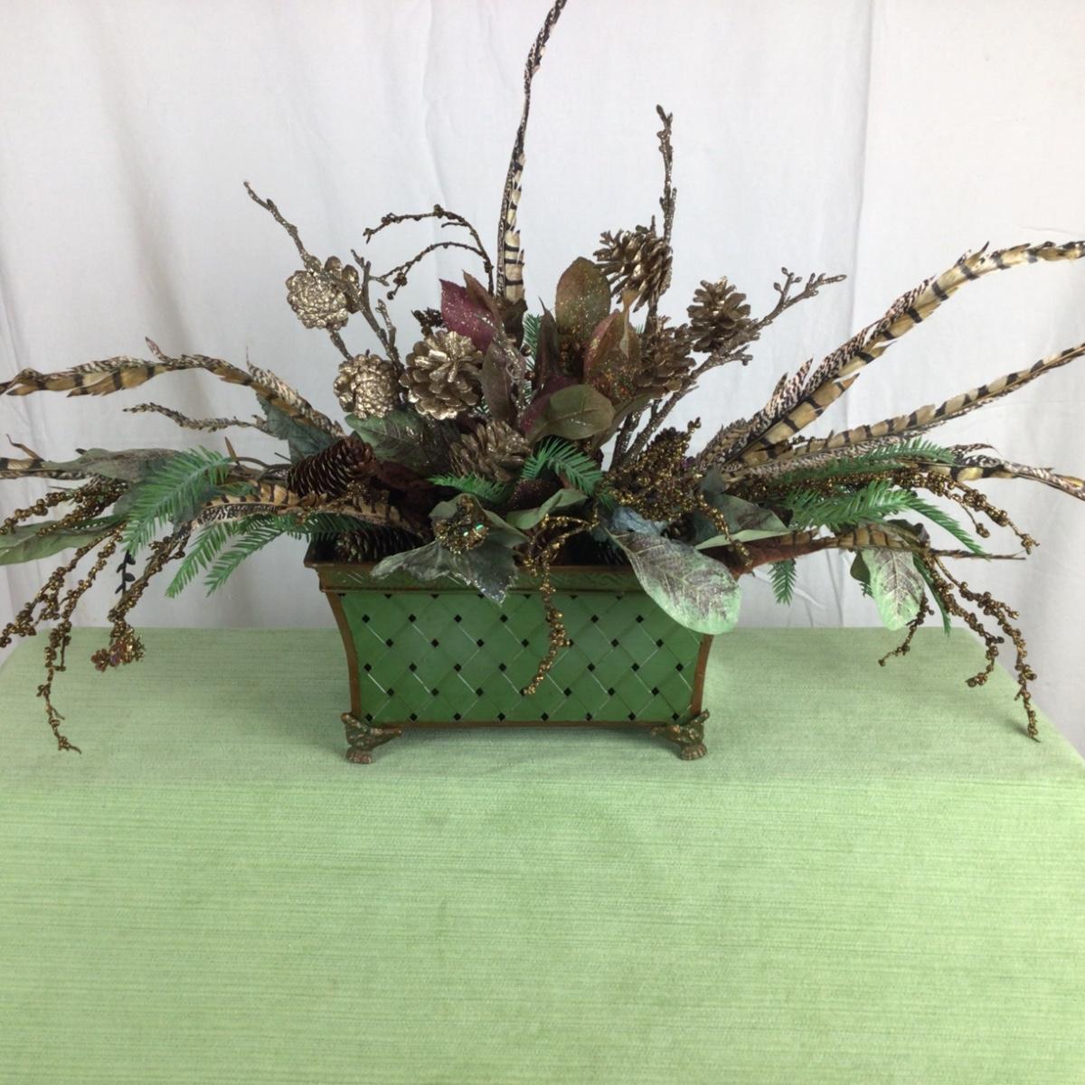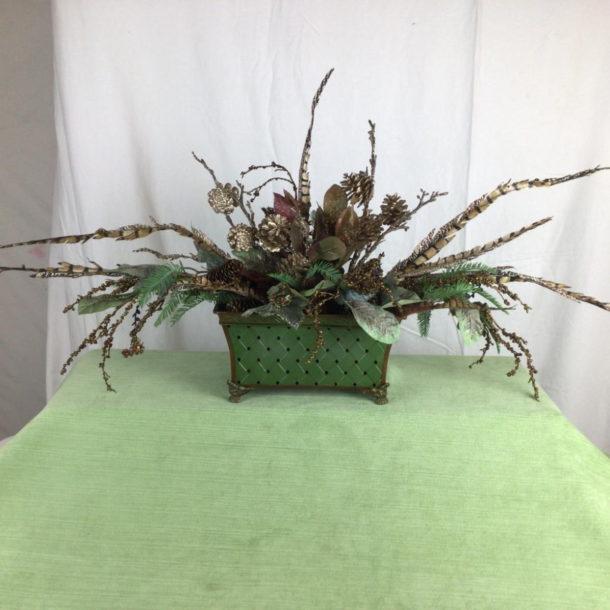 Lot 1607. Centerpiece with Pinecones and Pheasant Feathers
