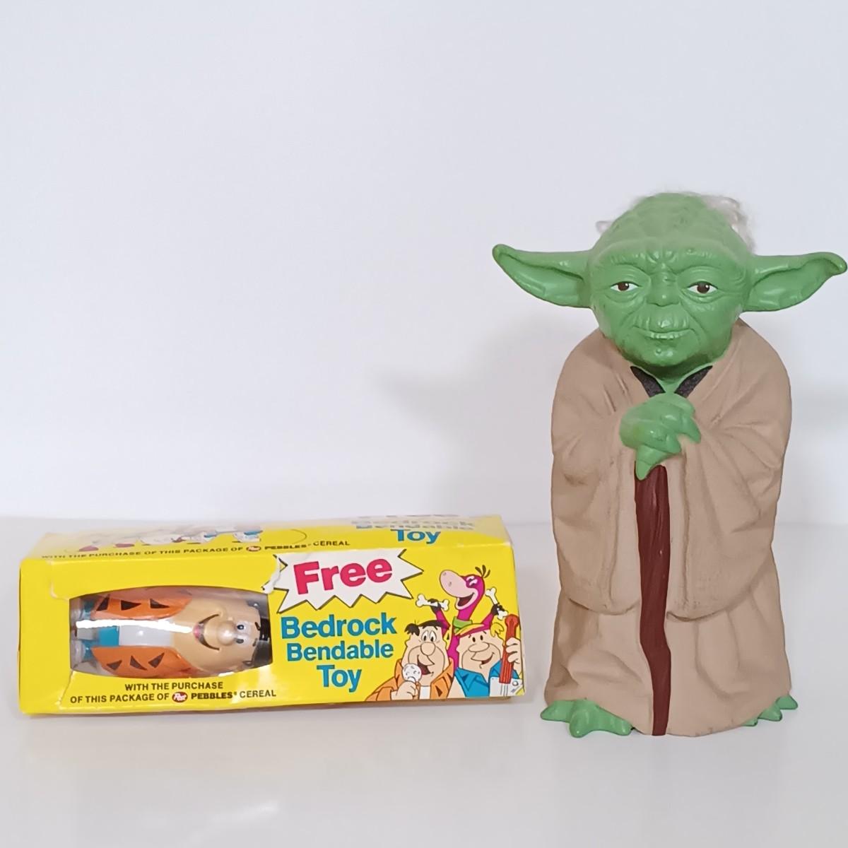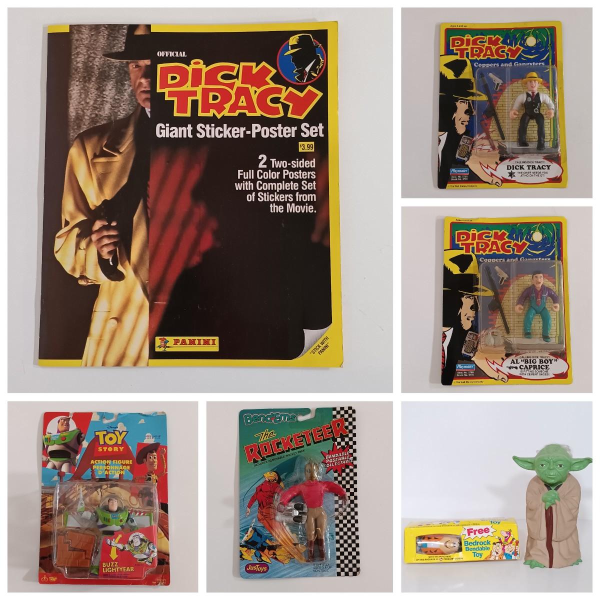 LOT 160B: Dick Tracy Sticker-Poster Set and Playmates Figures w/ 1981 Yoda Puppet, Pebbles Cereal Flintstones Toy & More