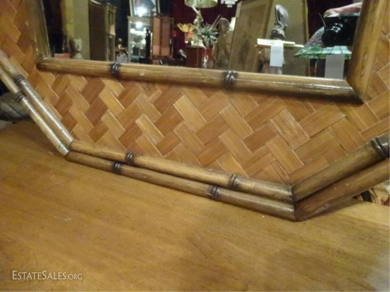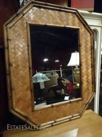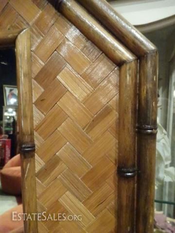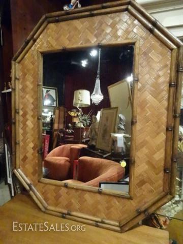 LOT 160B: MID CENTURY MODERN MIRROR, BAMBOO AND RATTAN OCTAGONAL FRAME, 35" X 28", SKU960.02 H35