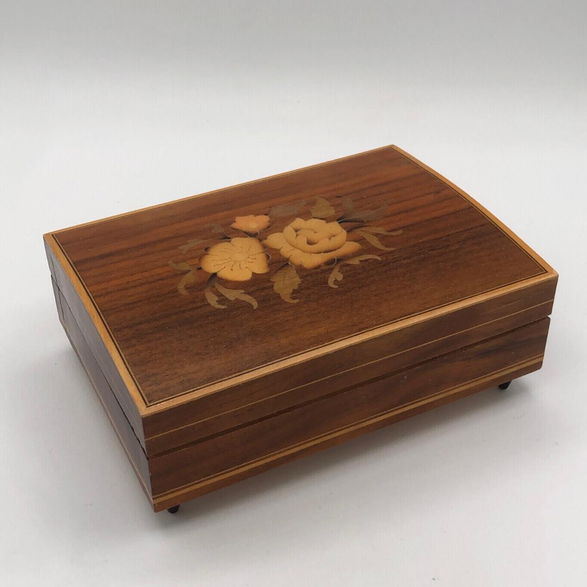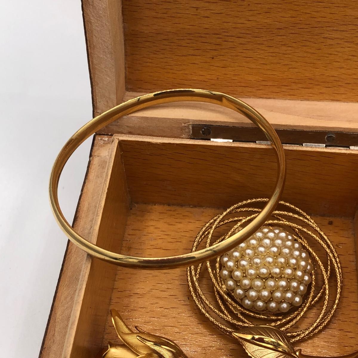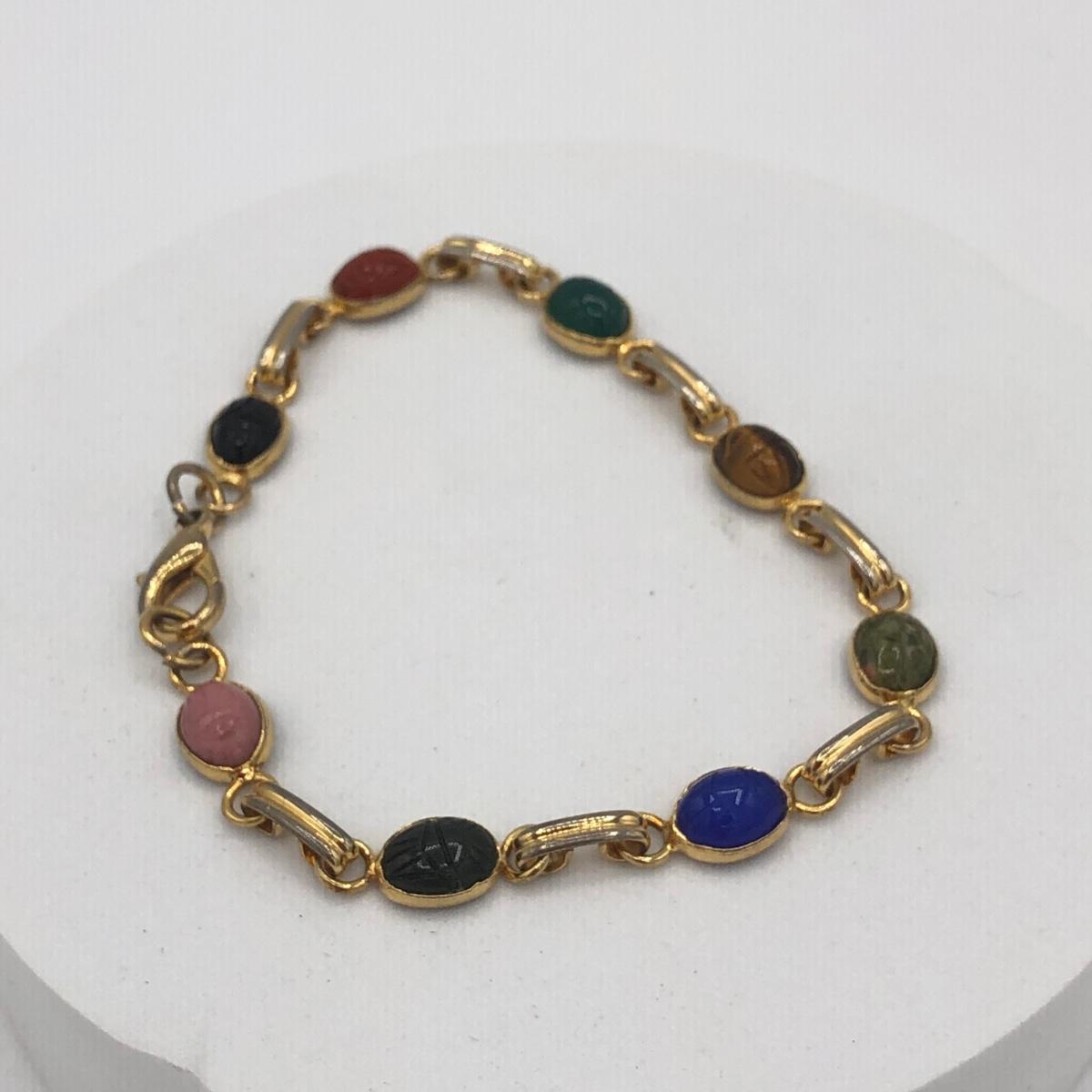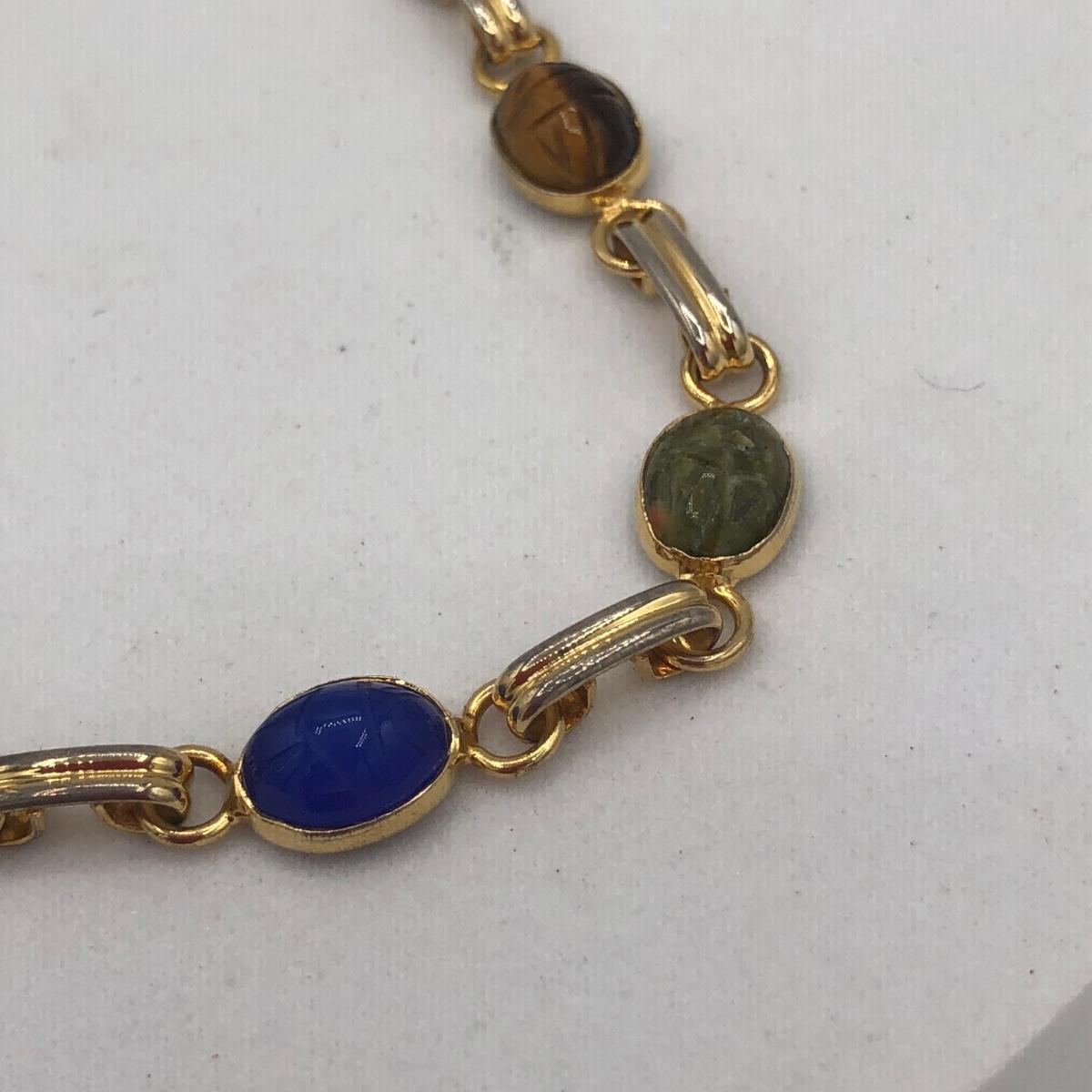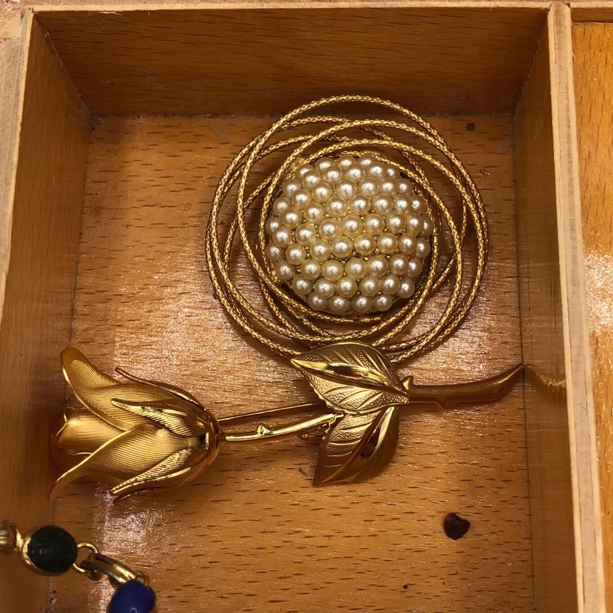 LOT 160J: Vintage Enameled Lizard Pins w/ rhinestone eyes, Scarab Bracelet & More in Wooden Music Box "Come Back to Sorrento"