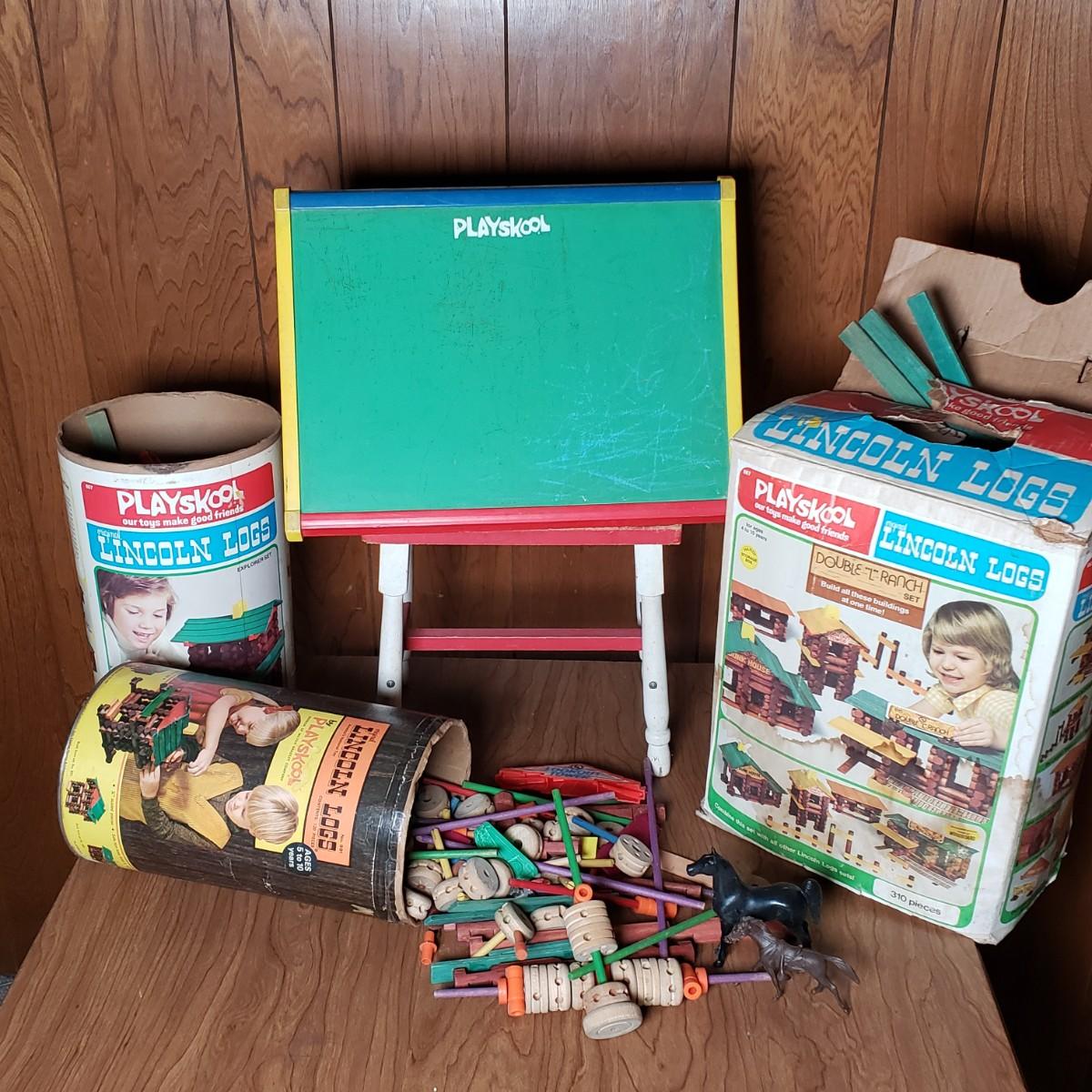 LOT 160L: Vintage Playskool, Tinkertoys, Lincoln Logs