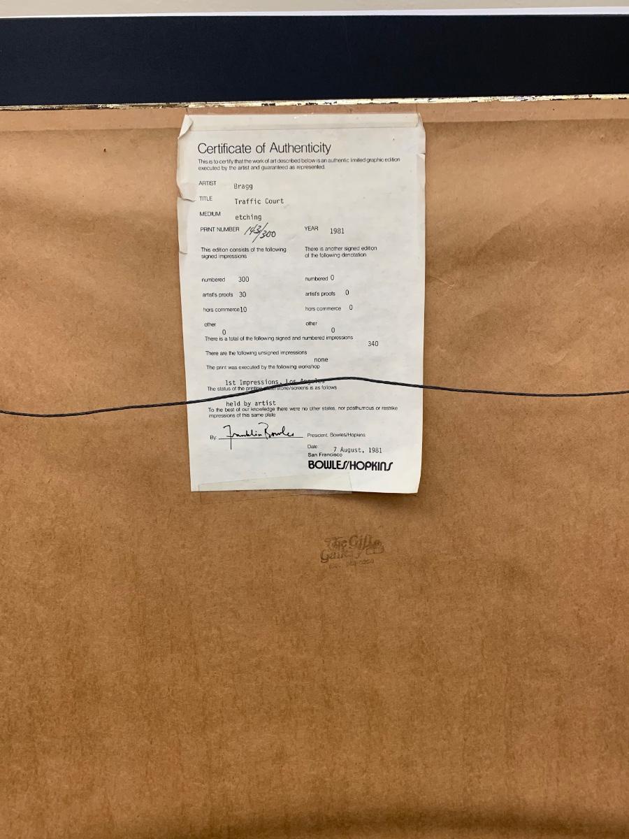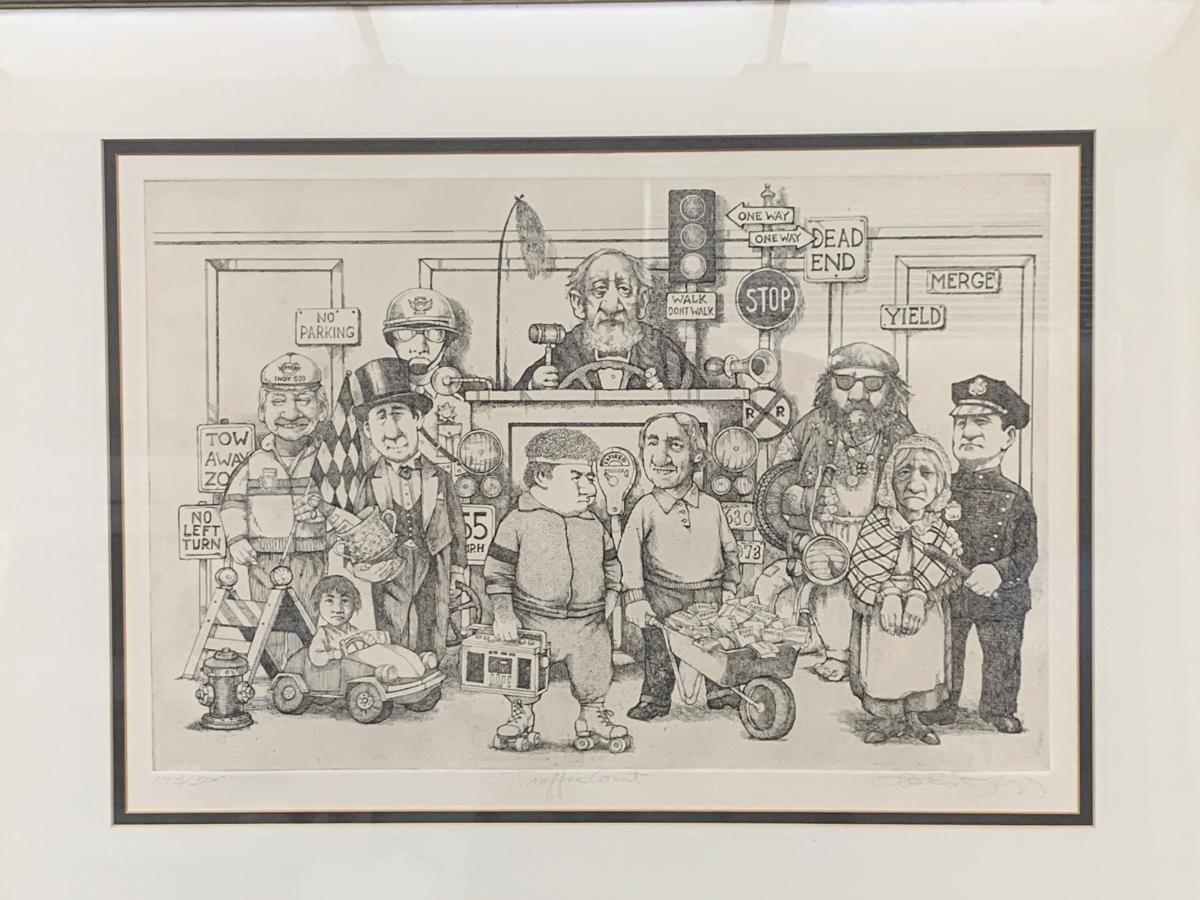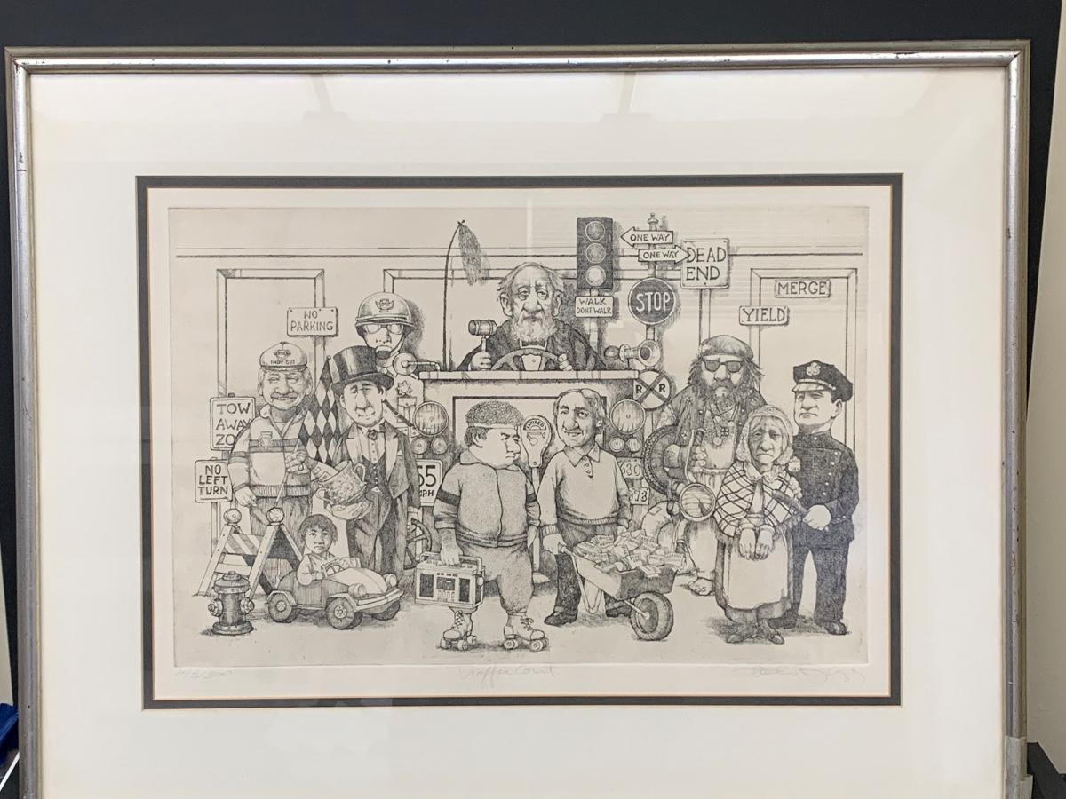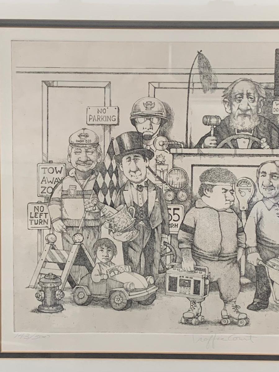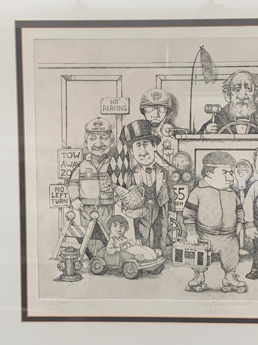 Lot 160R: Vintage "Traffic Court" Signed Etching, w/COA
