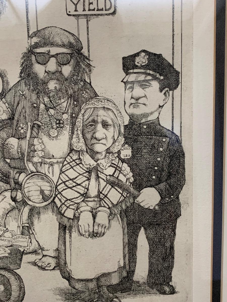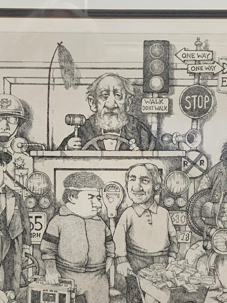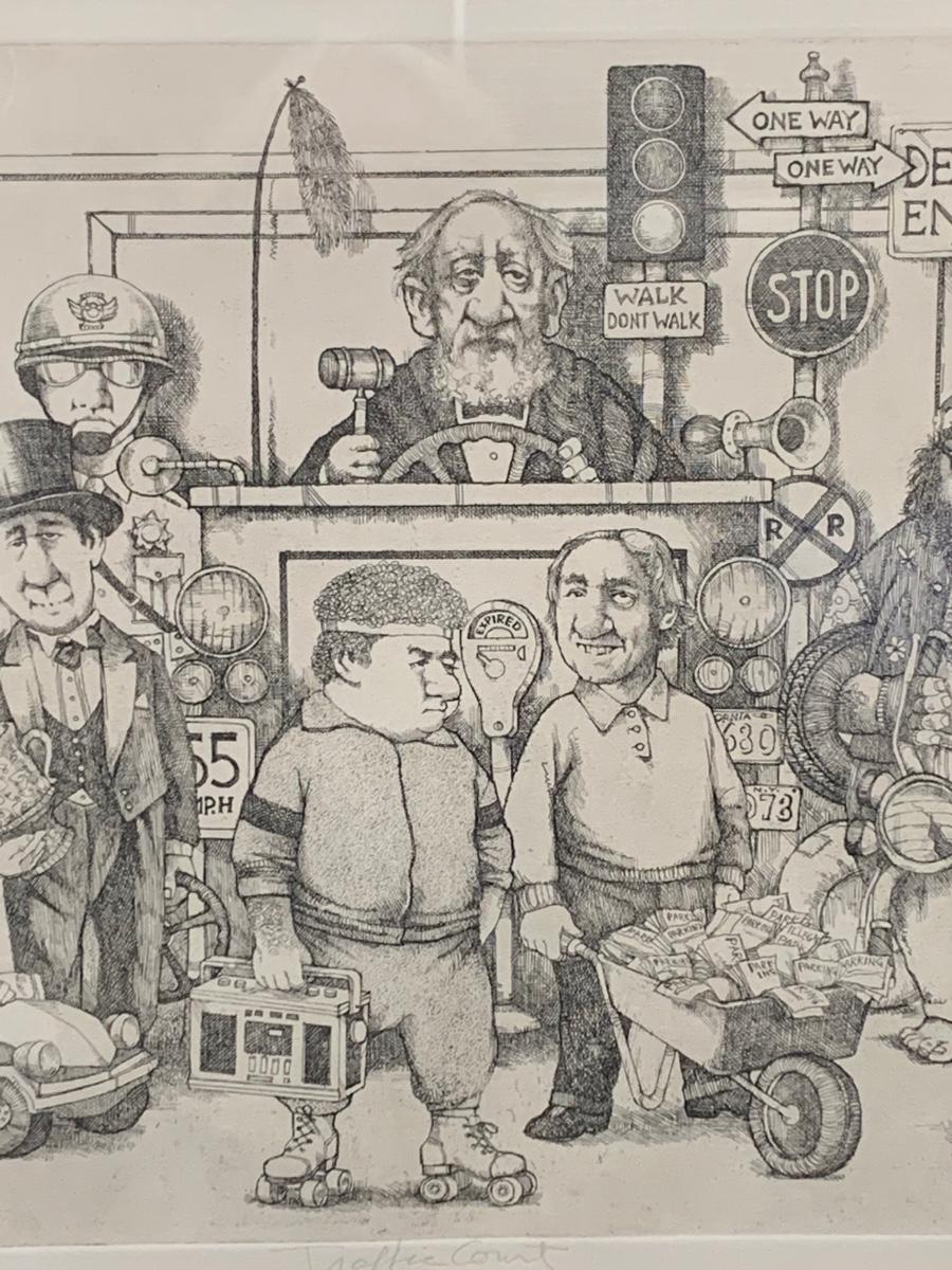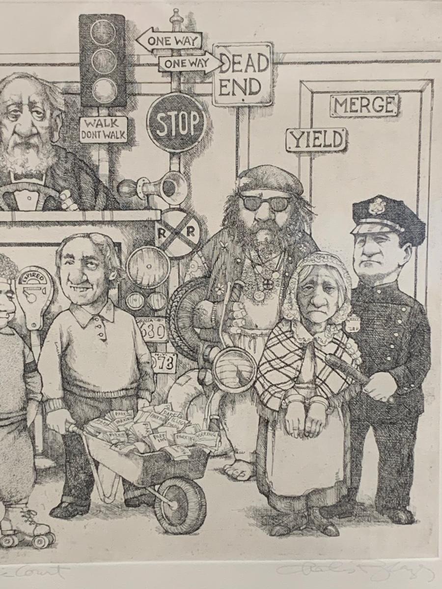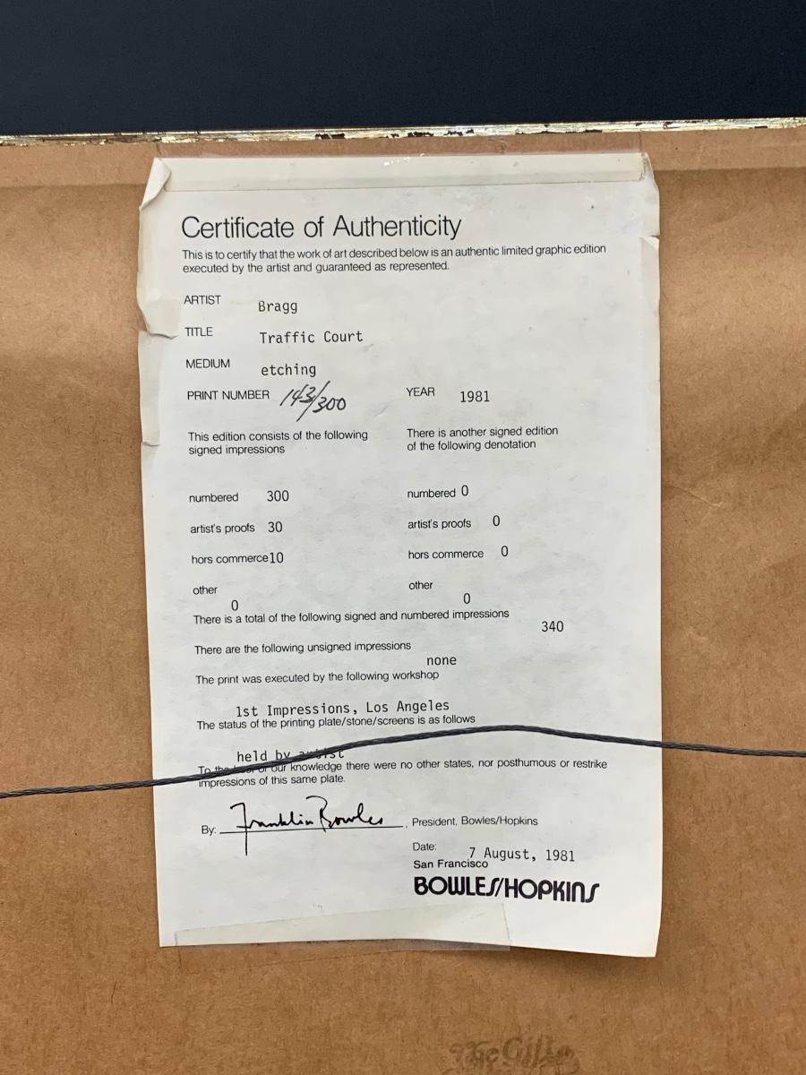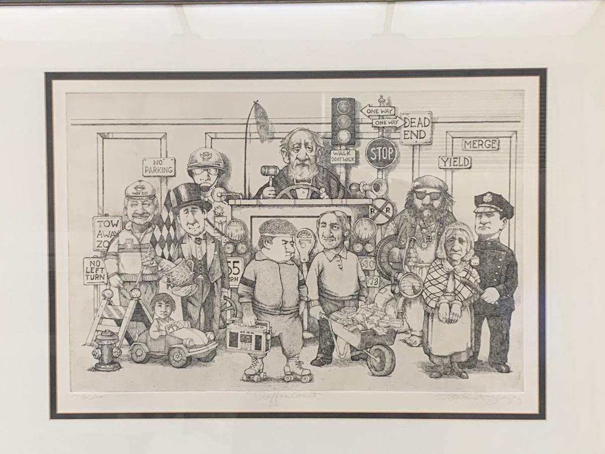 Lot 160R: Vintage "Traffic Court" Signed Etching, w/COA