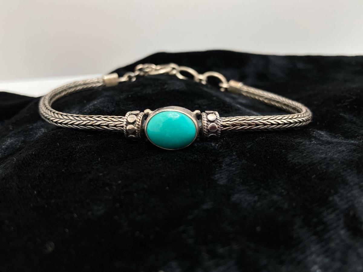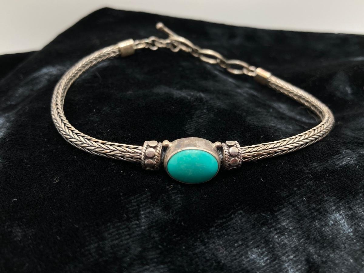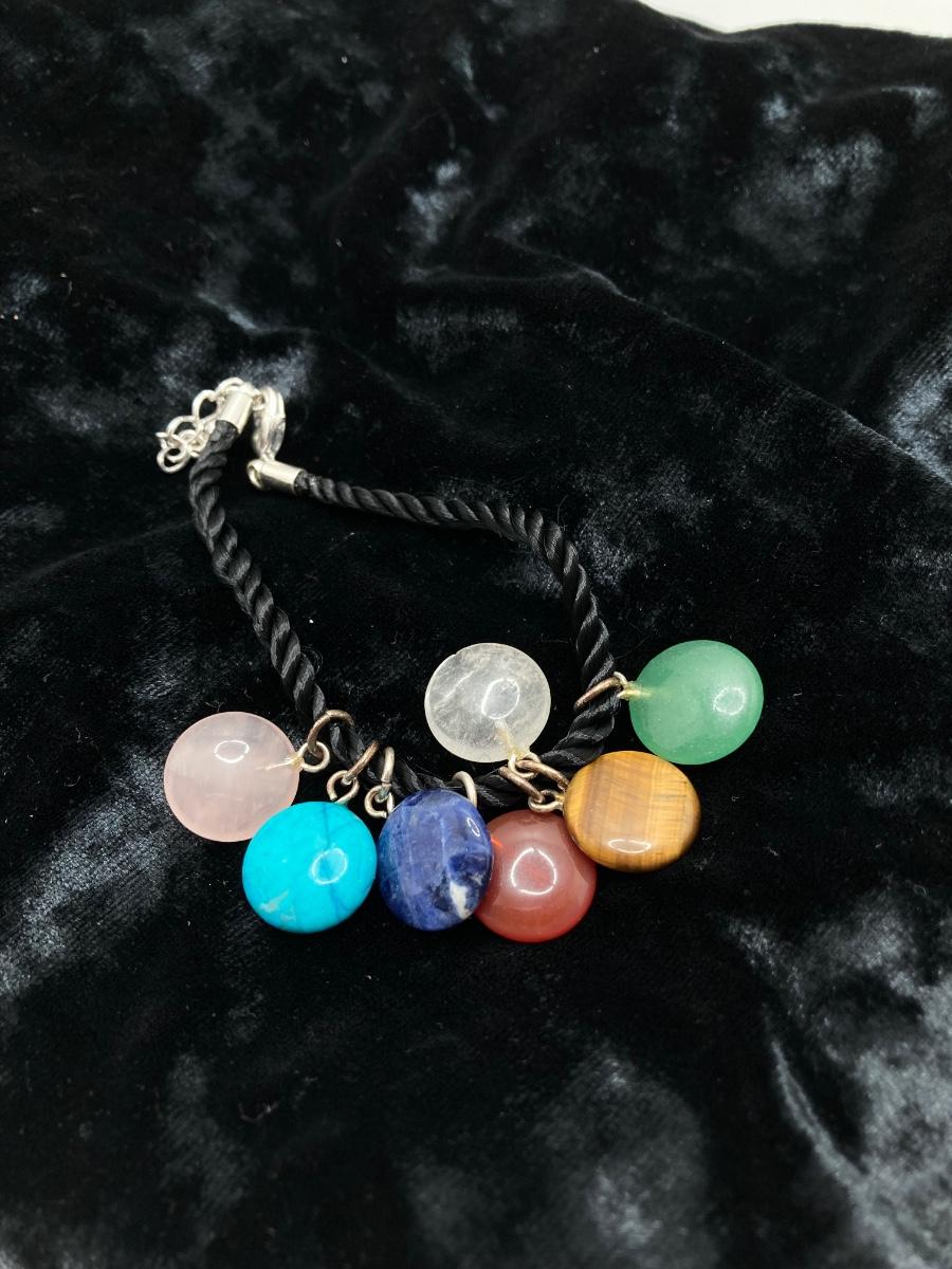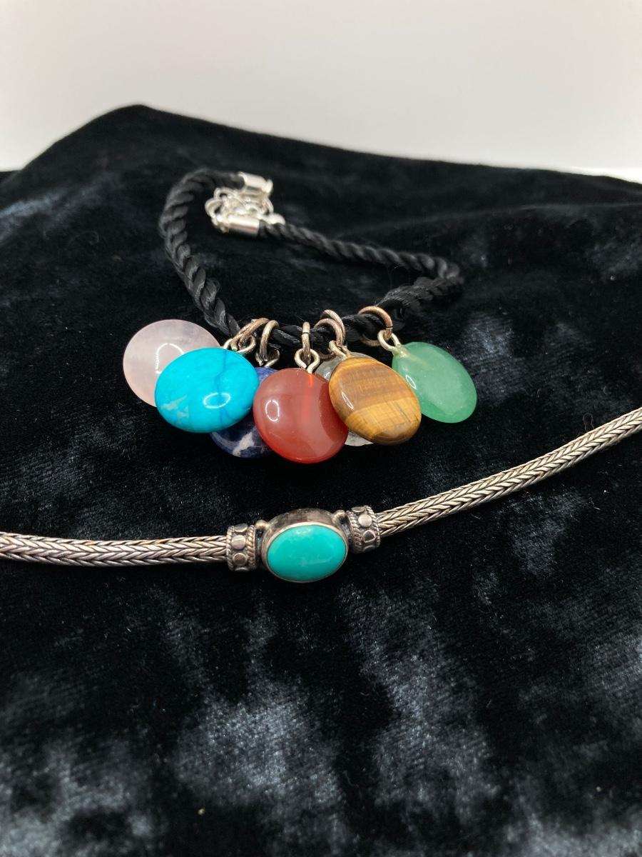 LOT 161: Bracelet Collection - Sterling and Turquoise and Semi Precious Discs on Silk Cord - Adjustable 7 - 8"