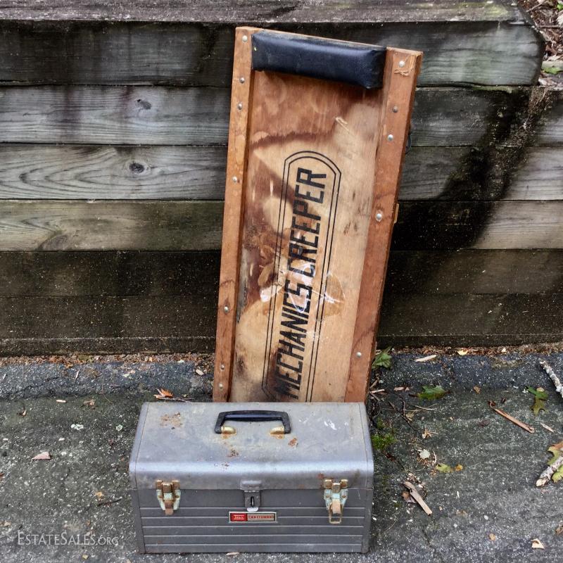 Sturdy Mechanics Creeper. Also includes a Craftsman metal toolbox with a couple of misc. tools. Both are a bit dirty. See photos for details. Shipping available or local pick up in Flat Rock, NC.