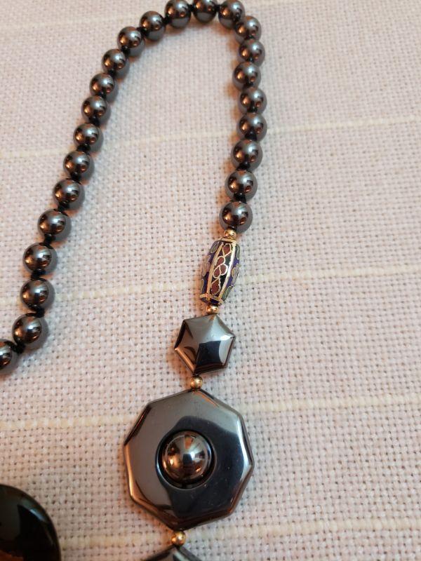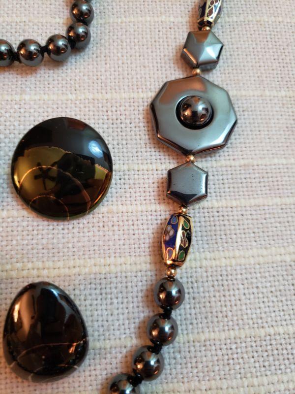 Lot 161: Hematite & Cloisonne Necklace & 2 pairs of Earrings