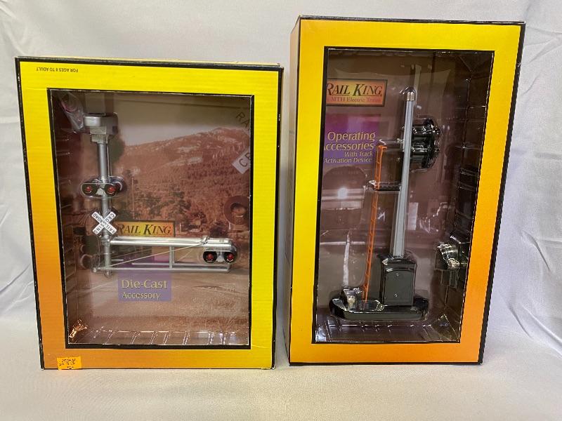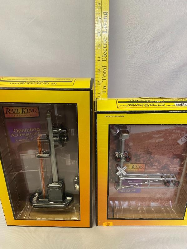 Rail King Scale operating RR crossing signal and Rail King Block signal.