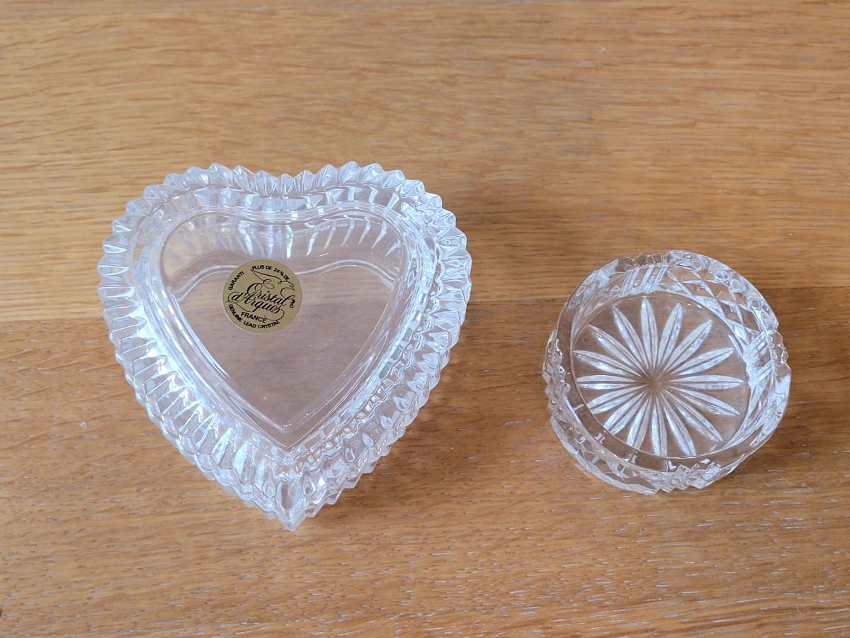 Lot 161: Crystal Heart Trinket Box and Small Crystal Dish
