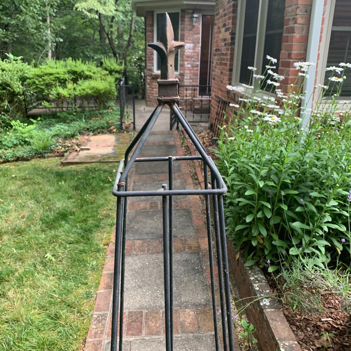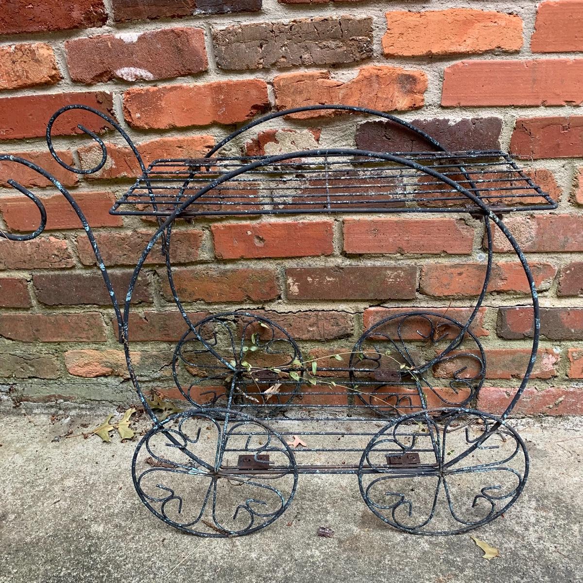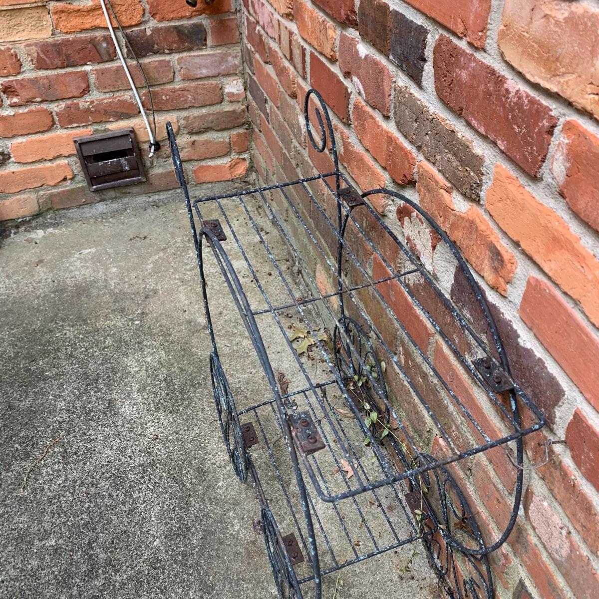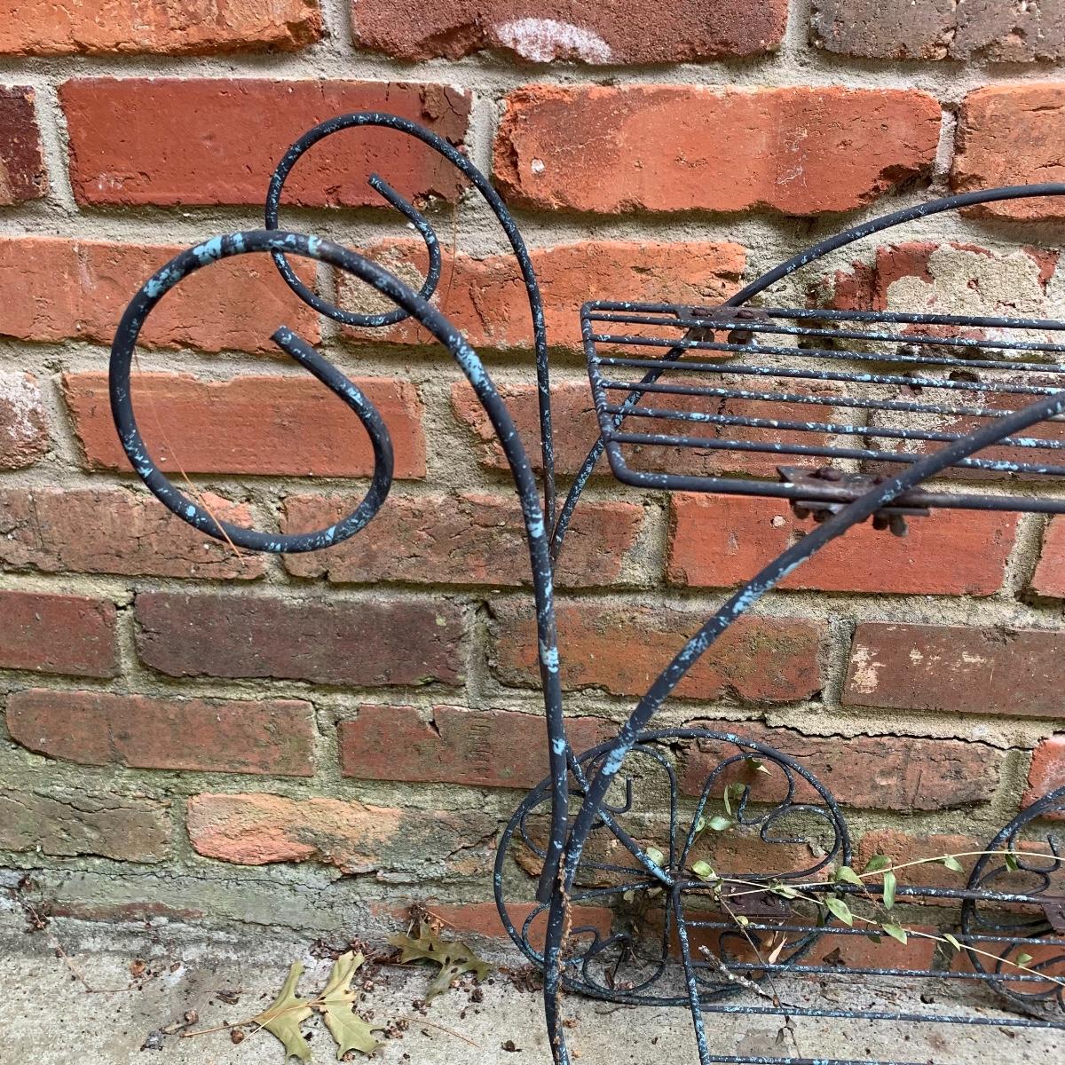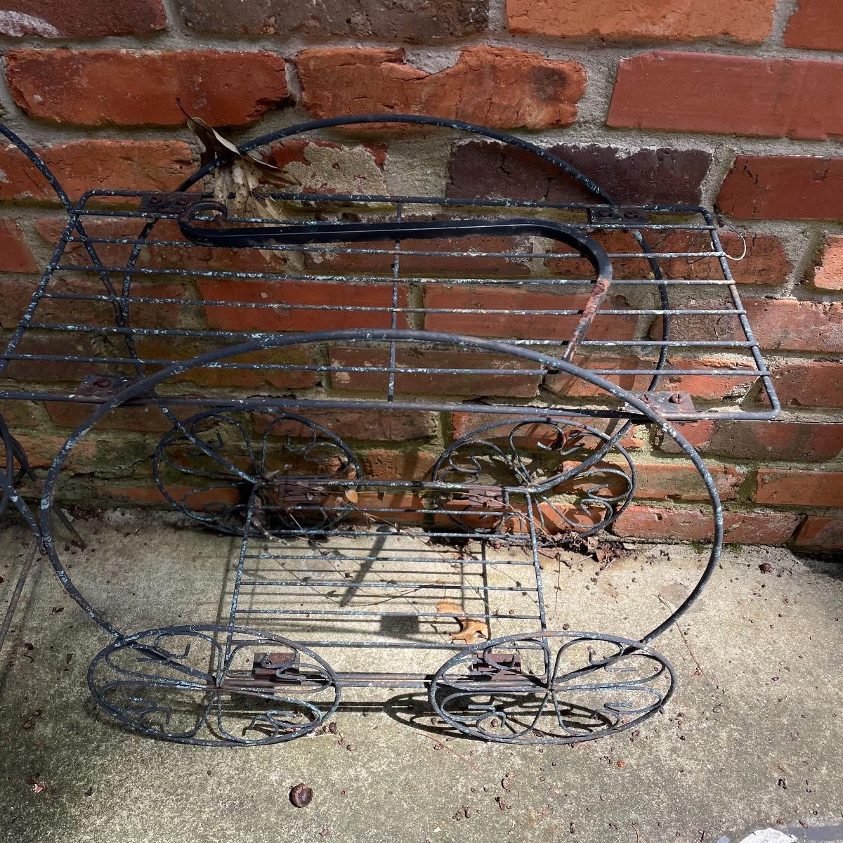 Decorate your yard and patio with these items. Included is a piece of metal wall art that resembles a cross, a decorative metal tea cart, a metal trellis, and a metal plant hook. See pics for adorable details. Trellis is 61” tall. Tea cart is rustic, showing oxidation. To some it’s perfect and for others, it’s a really quick spray paint job! Local pick up only.