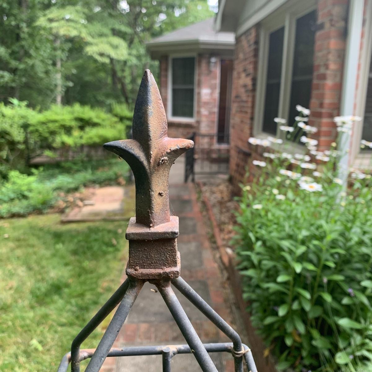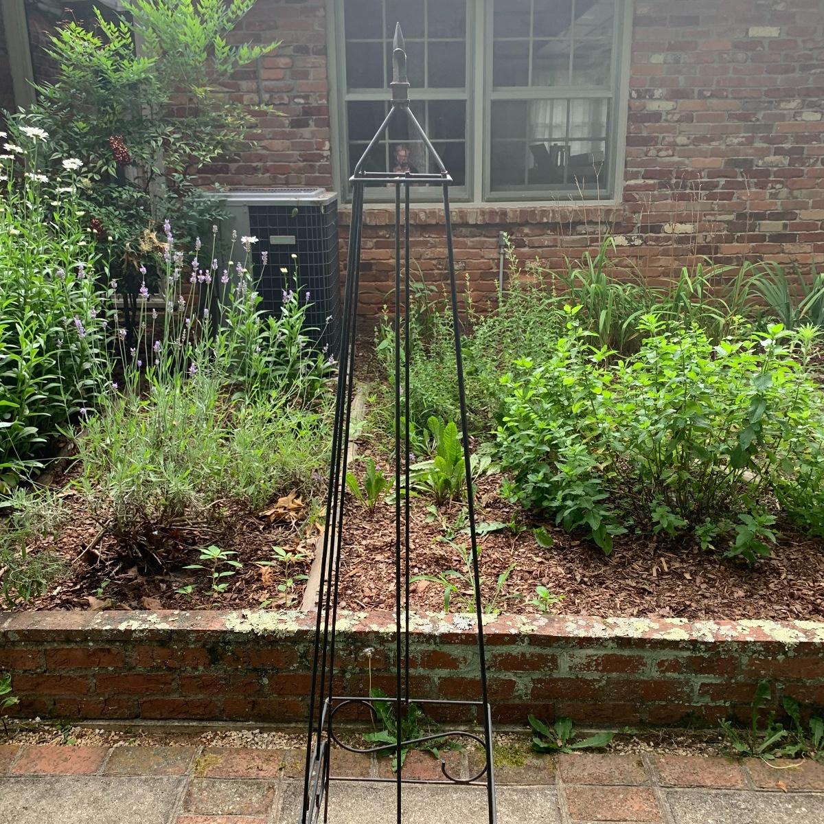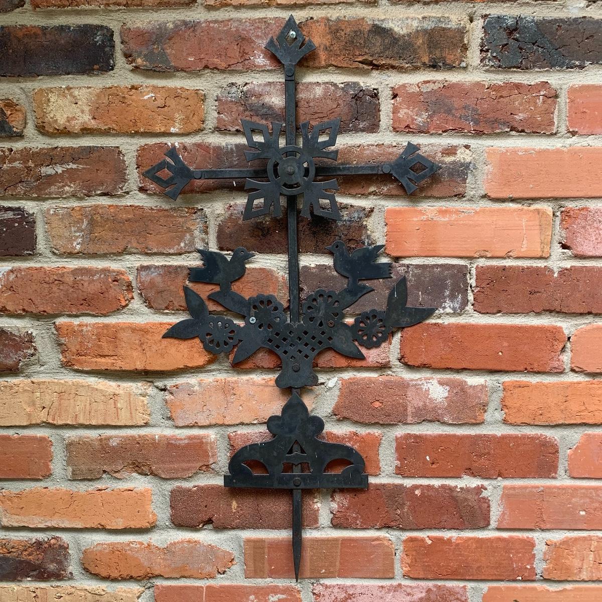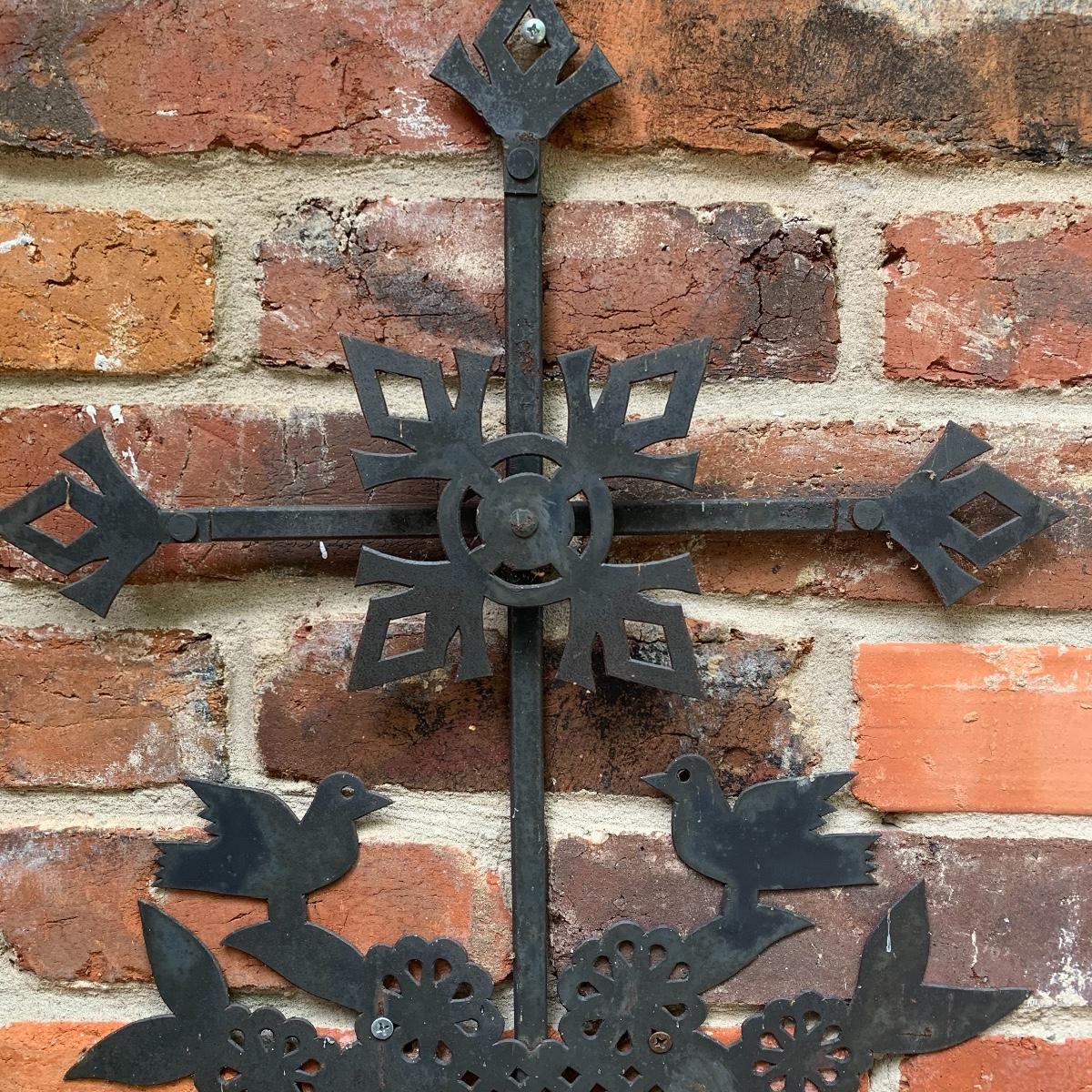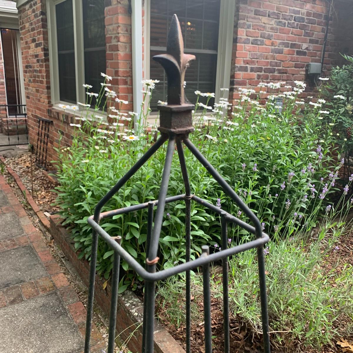 Decorate your yard and patio with these items. Included is a piece of metal wall art that resembles a cross, a decorative metal tea cart, a metal trellis, and a metal plant hook. See pics for adorable details. Trellis is 61” tall. Tea cart is rustic, showing oxidation. To some it’s perfect and for others, it’s a really quick spray paint job! Local pick up only.