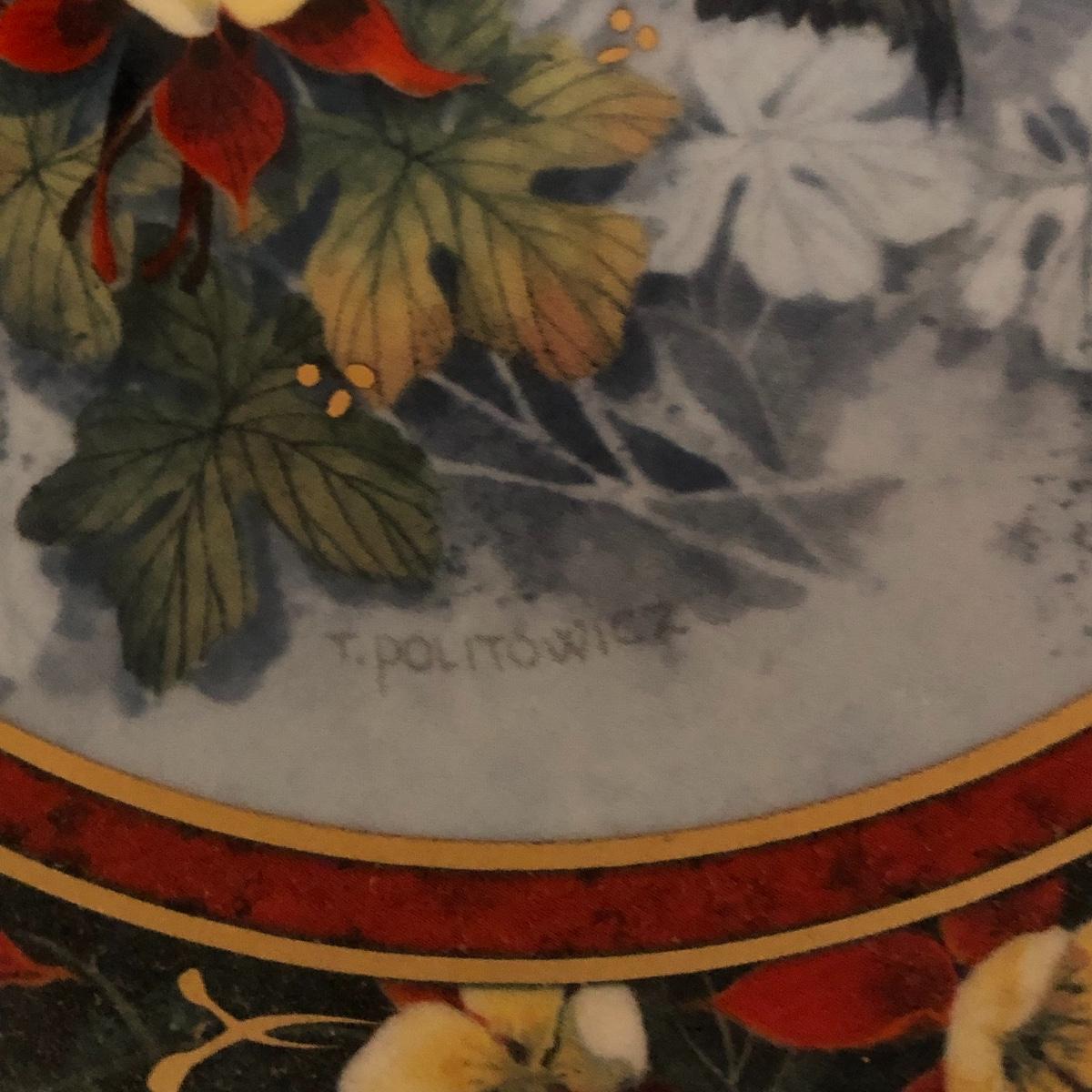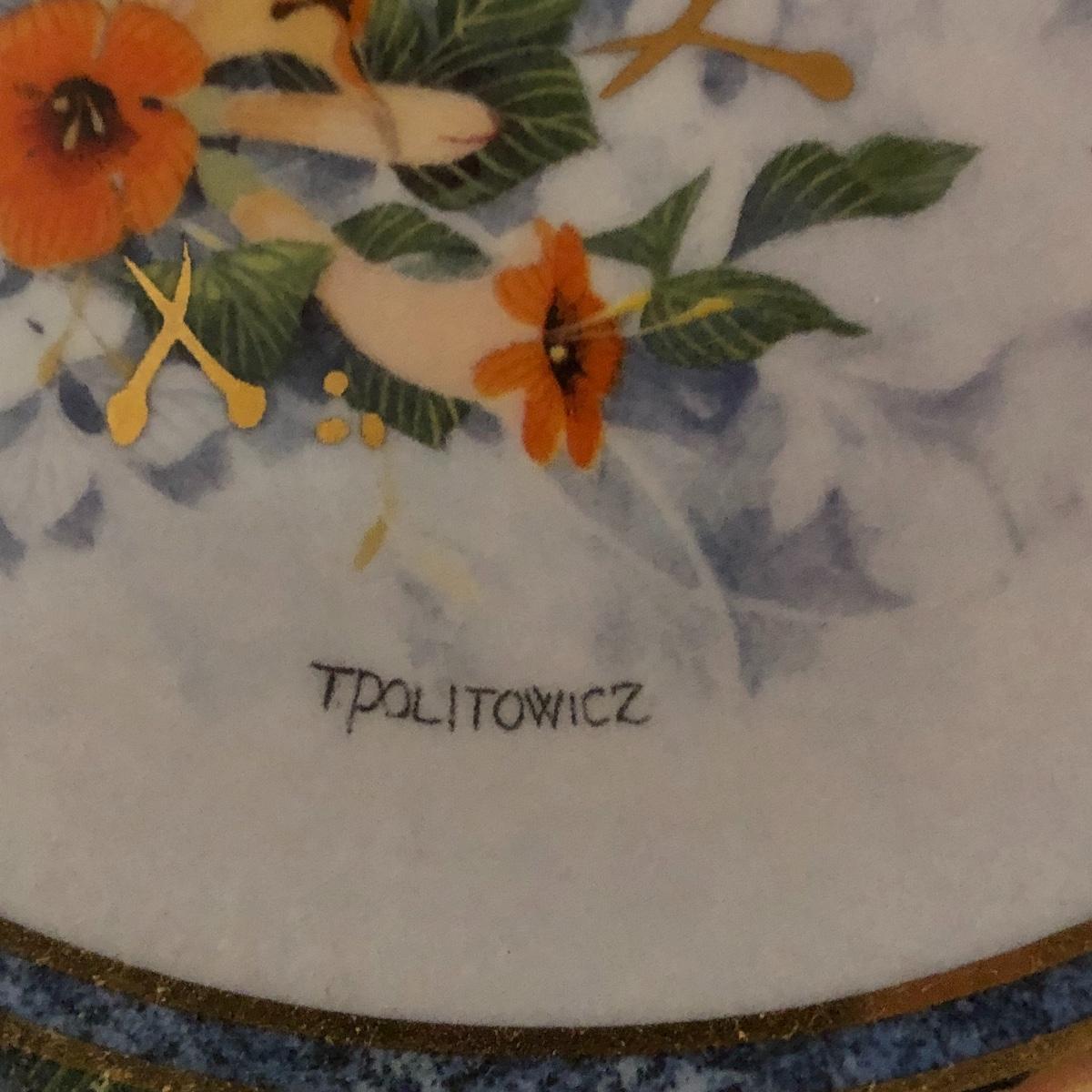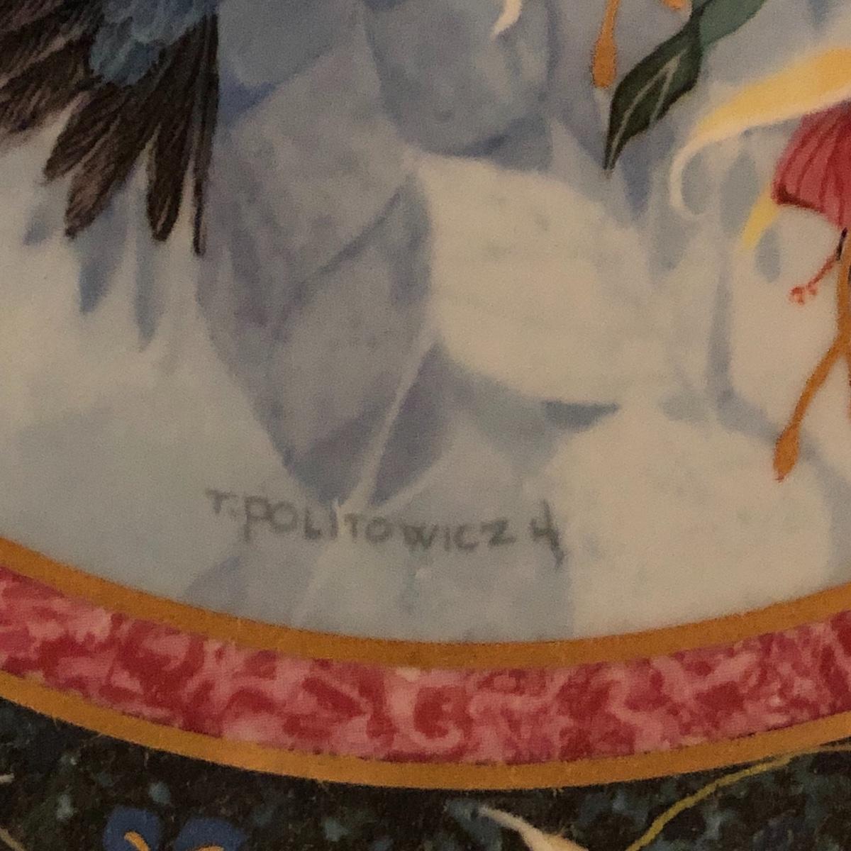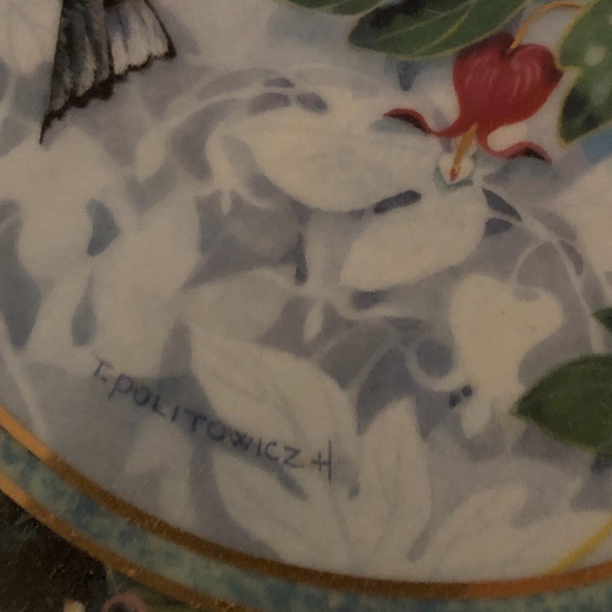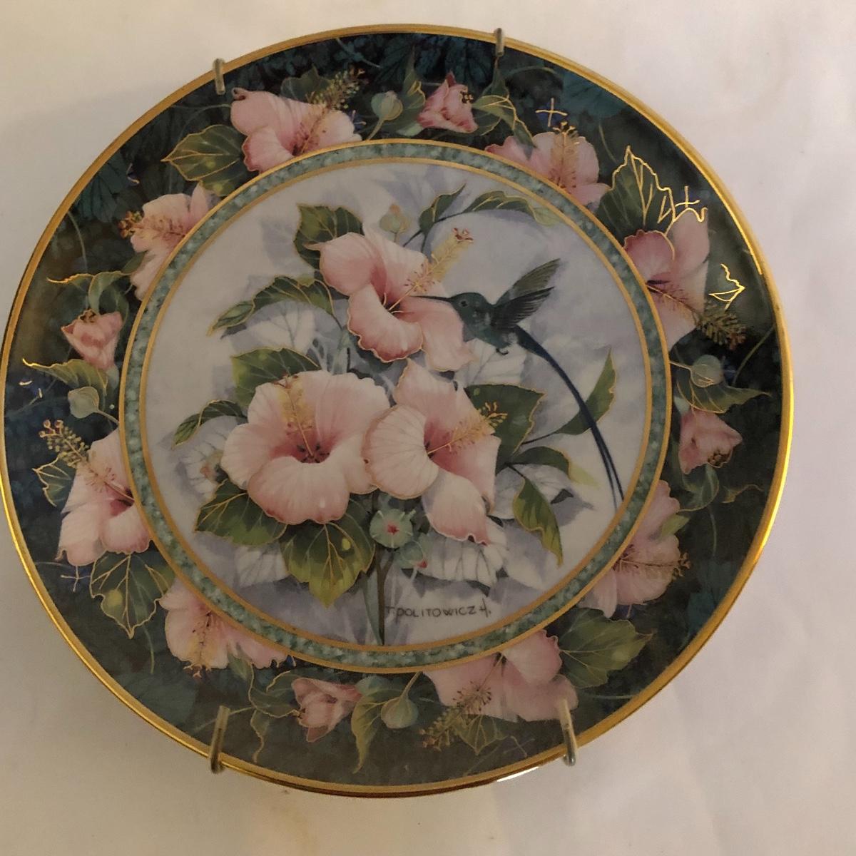 Decorate your home while paying homage to the small and mighty hummingbird. Each signed plate is a piece of art with vivid colors and gold edged! This lot contains twelve plates - all equipped with plate hangers and different scenes with hummingbirds! Each plate measures 8” in diameter. Shipping Available.