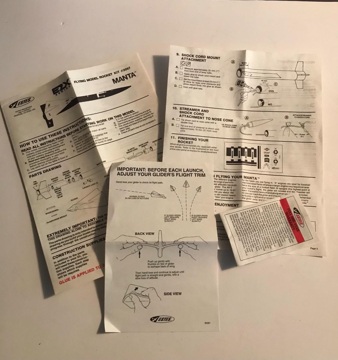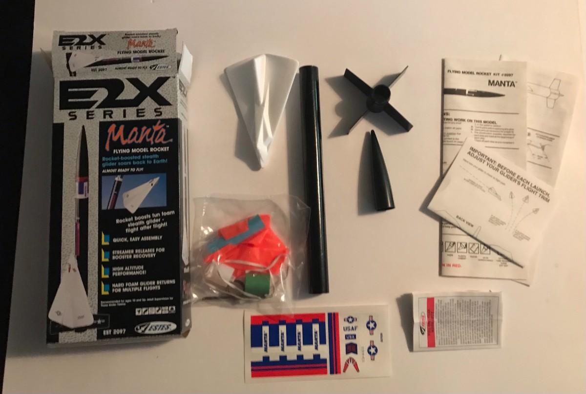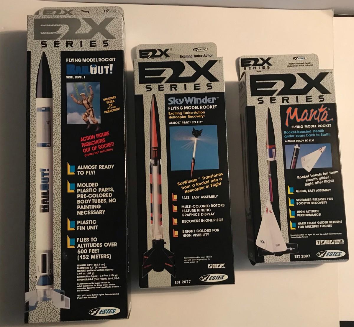 Vintage Model Rocket Collection includes three rockets from the Estes E2X Series - The Bailout and the SkyWinder, which are both new and unopened, and the Manta, which has an opened box, but sealed inner packaging and other parts - see photos. The pictures show condition, measurements if taken, and what is included in the lot. Due to the large amount that we photograph and the time frame, we are not always able to take measurements. All items unless noted, are pre-owned and have been used. If you purchased furniture, you must bring help. We do not allow one person to carry large furniture out on their own. Bring help, tools and a truck for the safety of our client’s homes, and your personal safety. Company policy. Thank you.