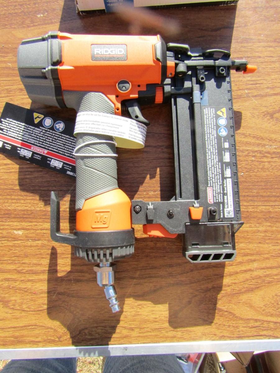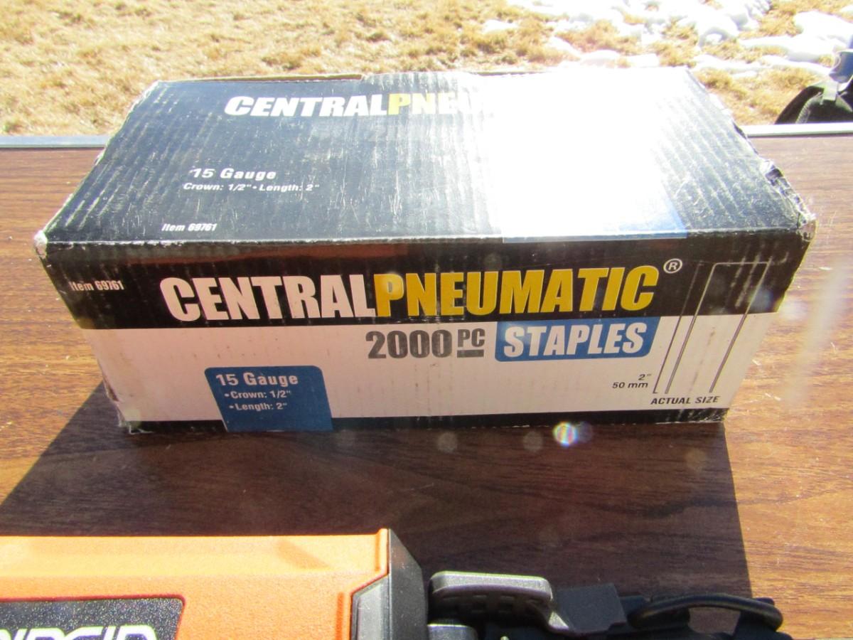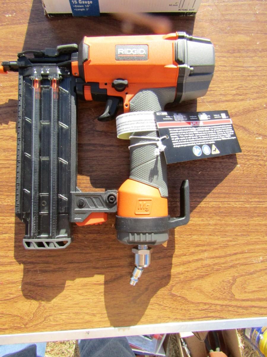 LOT 161 RIDGID 18 GAUGE AIR NAIL GUN AND A BOX OF 15 GAUGE STAPLES