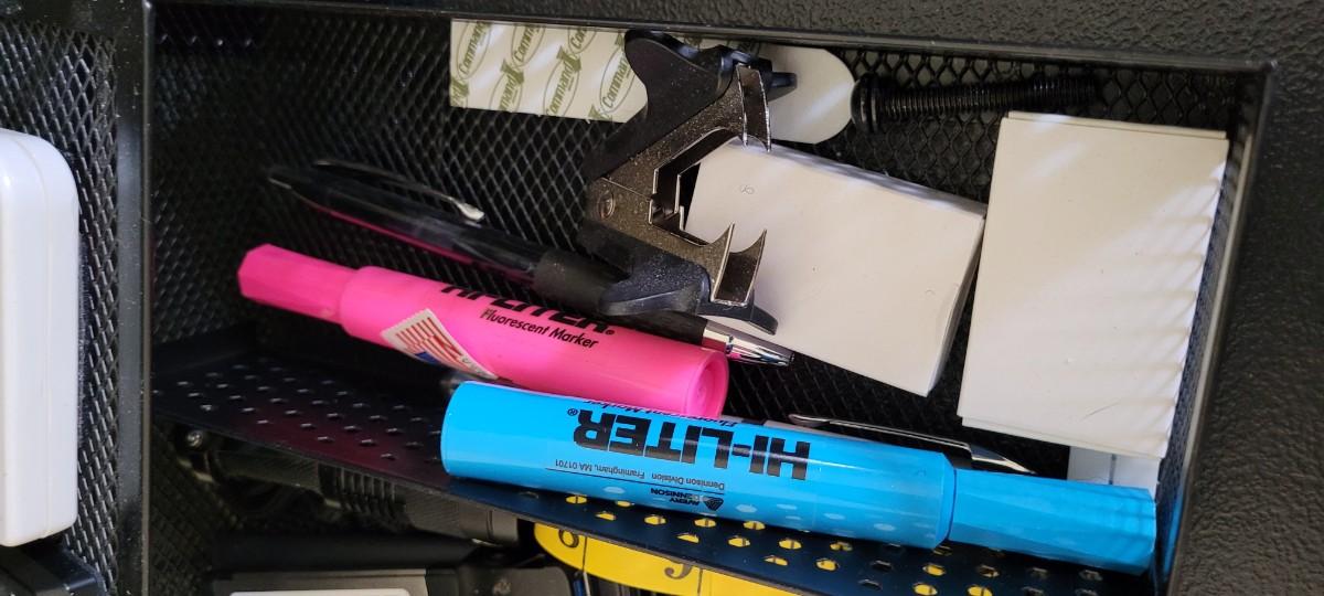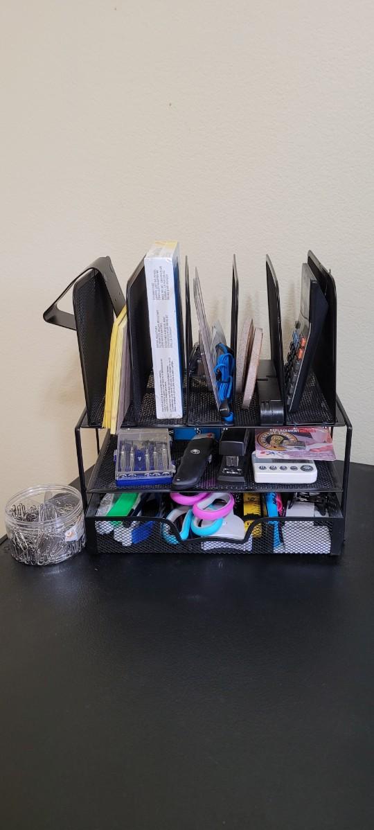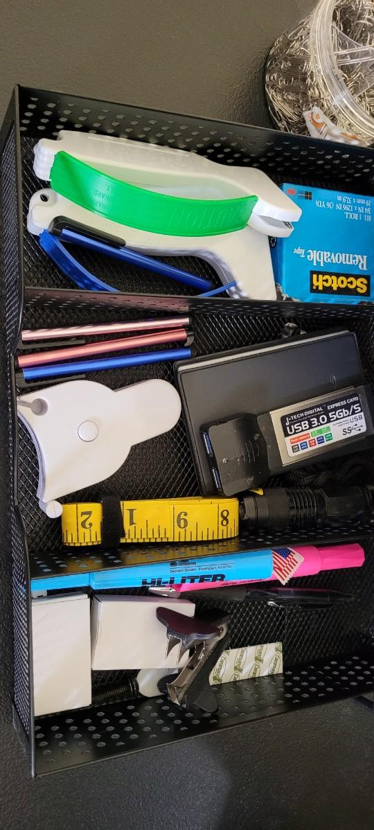 Lot 161: Metal Office Caddy filled with Assorted Goodies