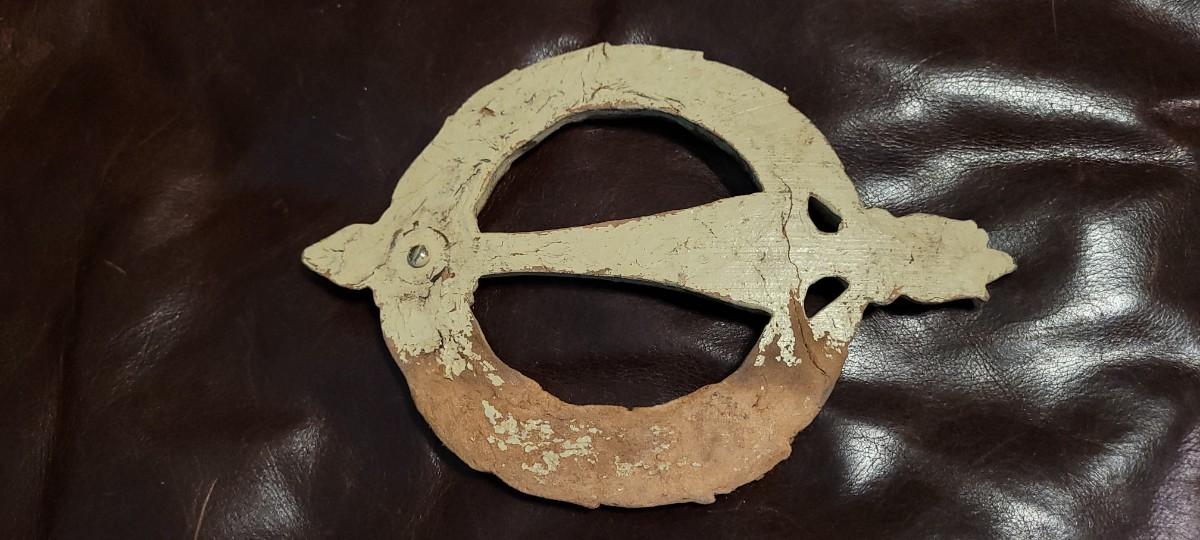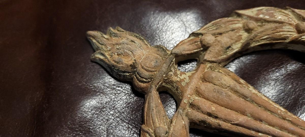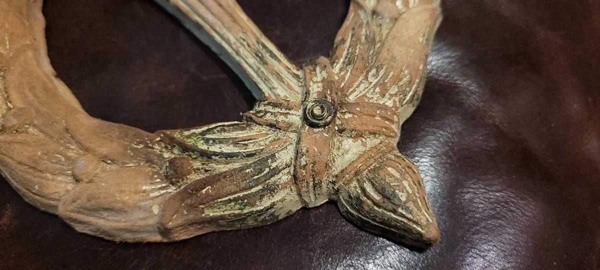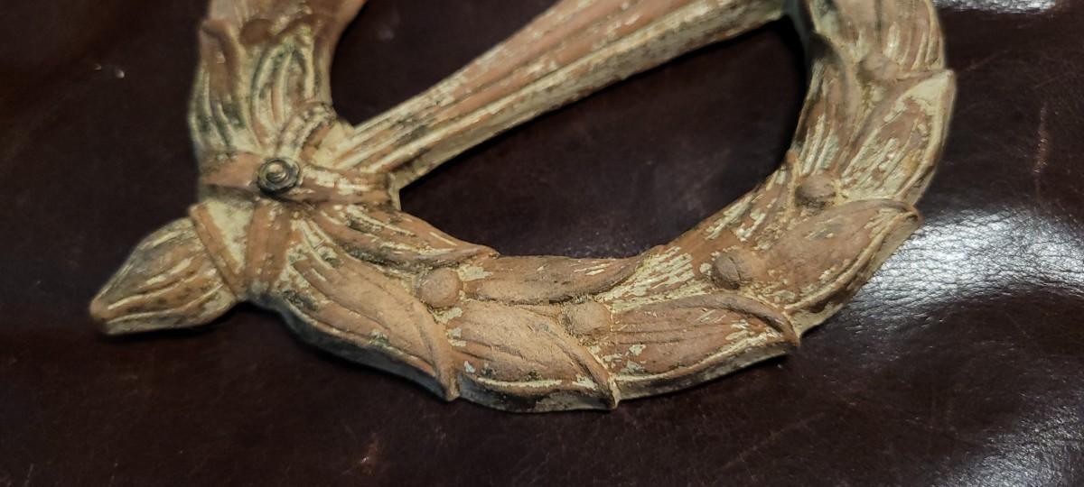 Lot 161: Antique Pressed Wood Wreath Hanging Sculpture Hardware