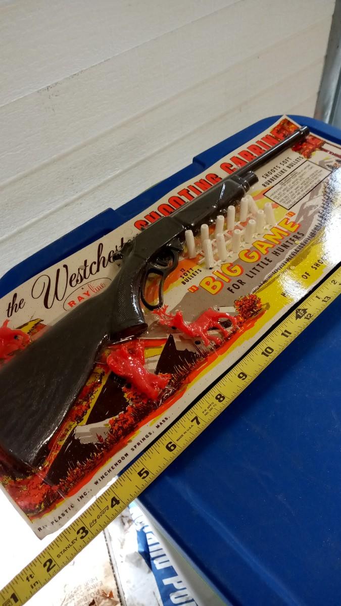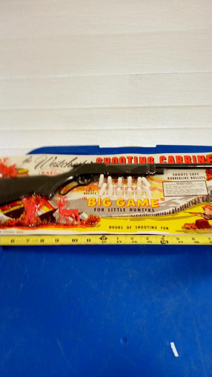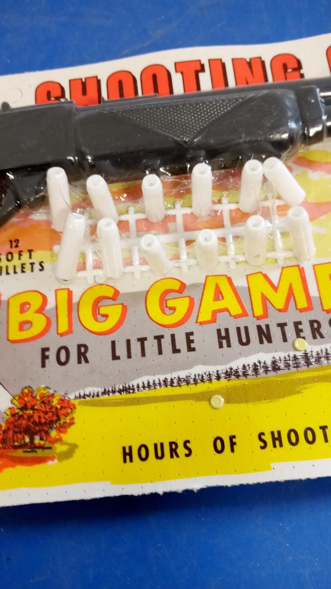 PLASTIC TOY GUN THAT SHOOTS PLASTIC BULLETS AT THREE TARGETS