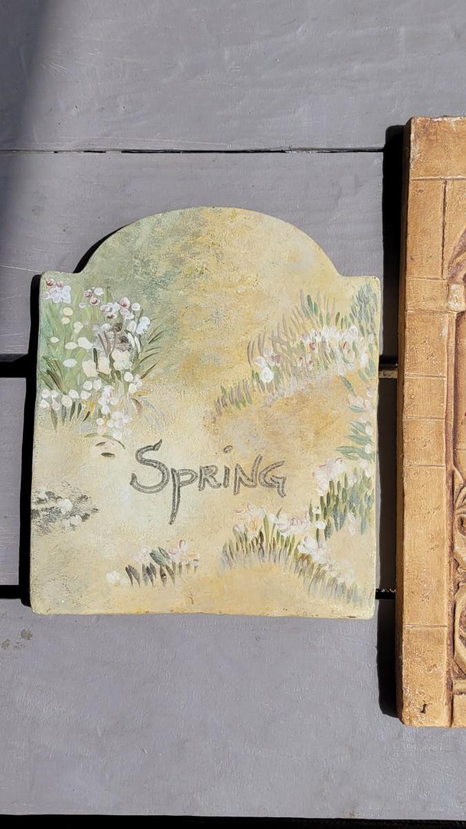Lot 161: Handpainted Plaster Garden Plaques