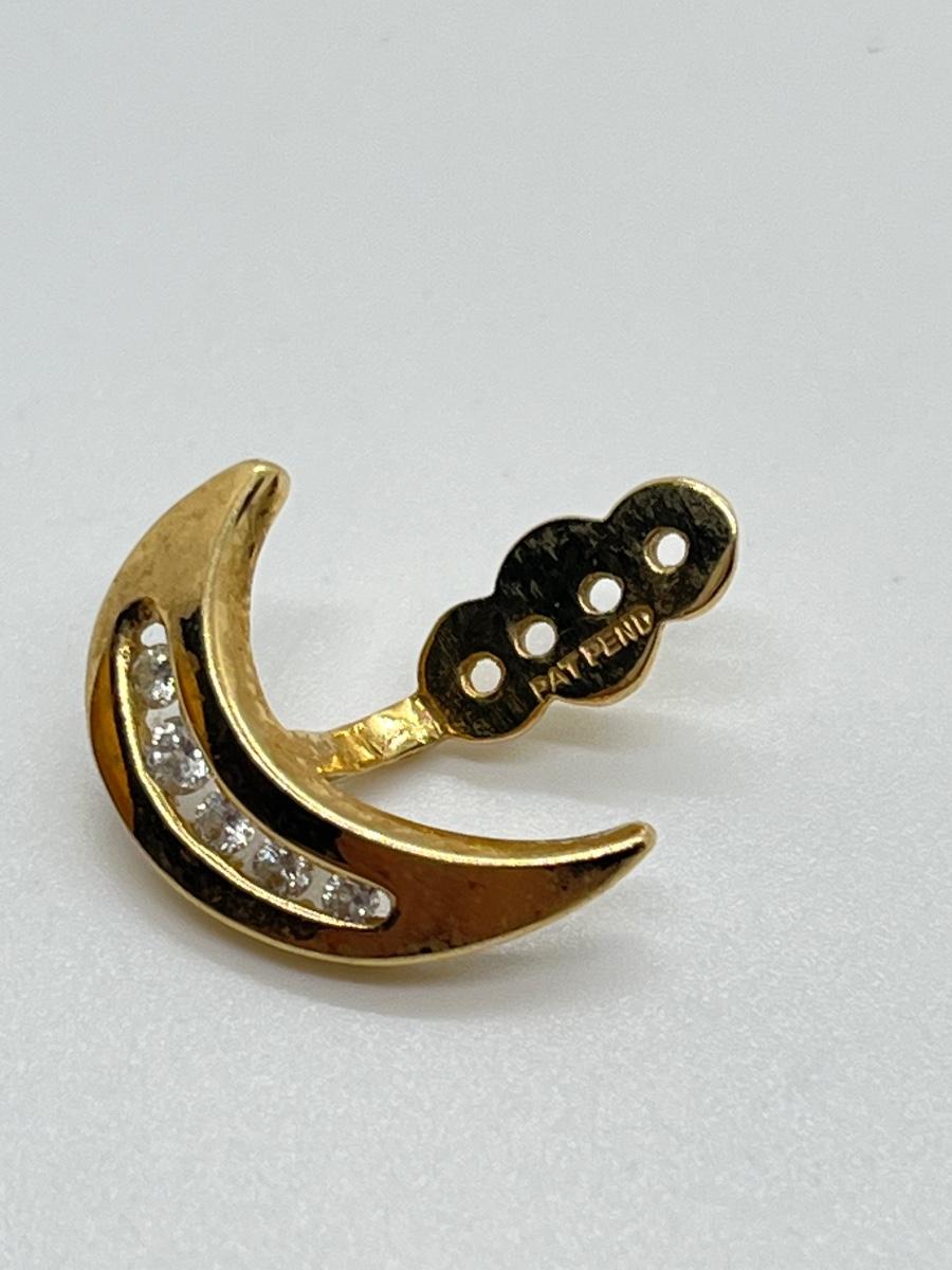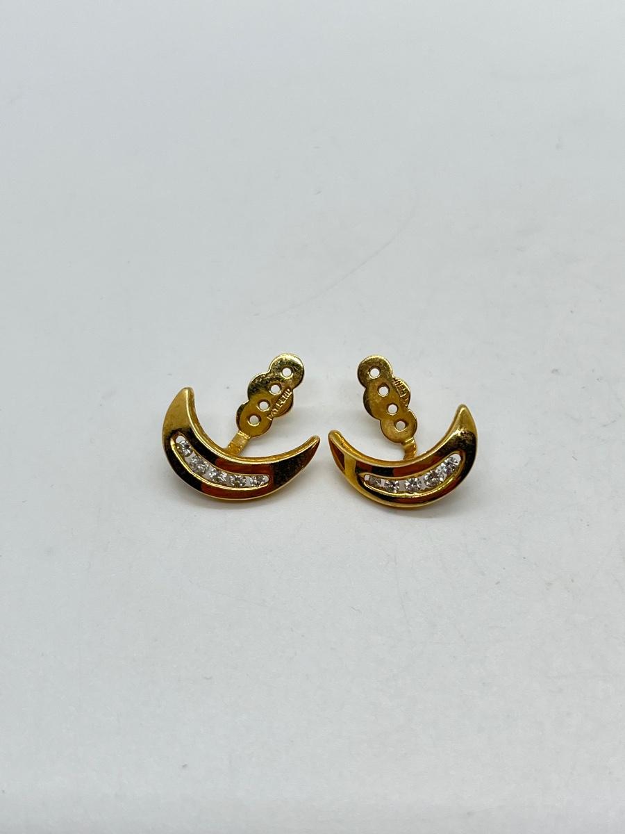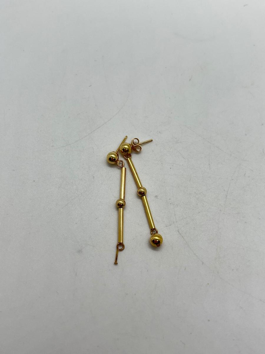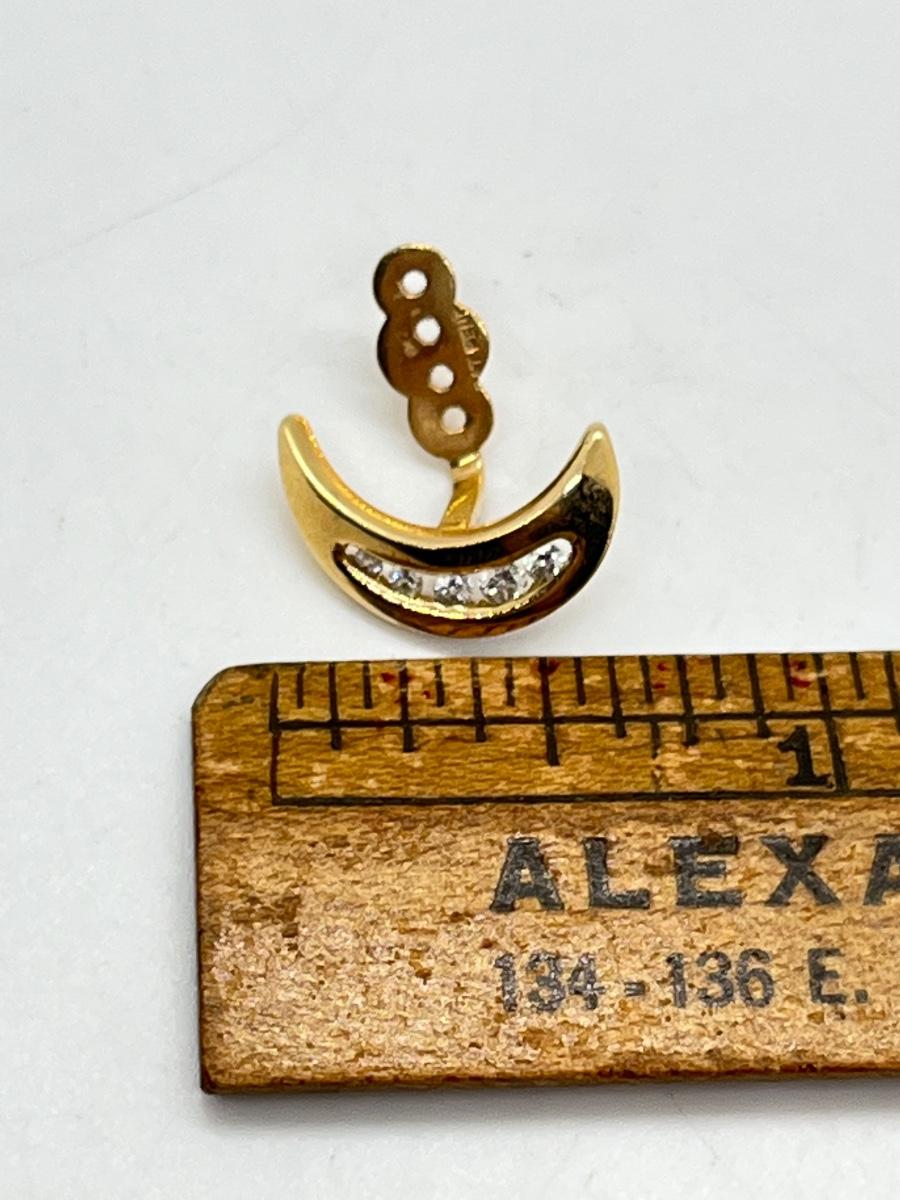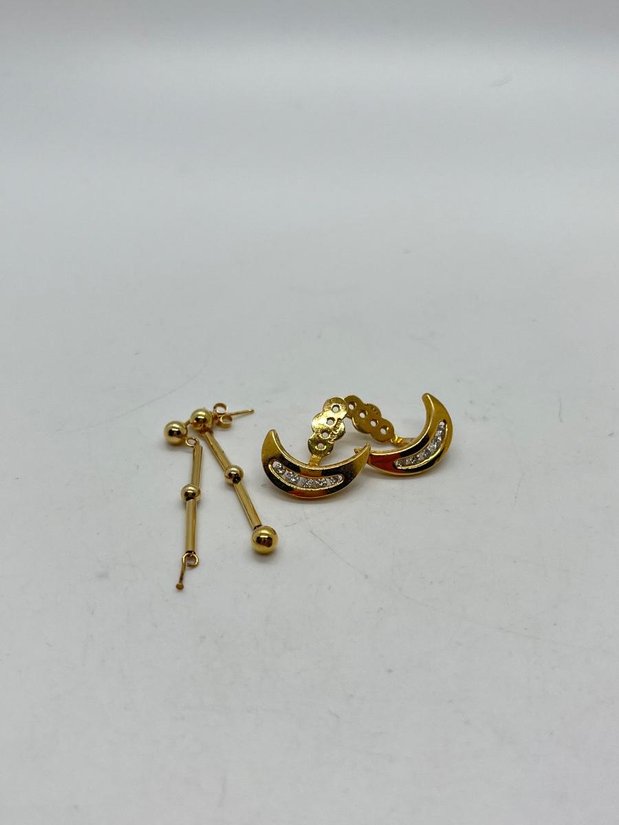 Gold and Diamond chip earring parts made to back a pair of solitaire posts (not present) + a pair of broken gold dangling earrings - missing one ball from bottom end of one earring.