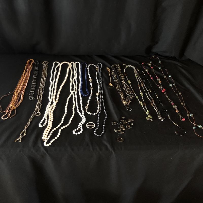 A nice selection of beaded necklaces and more. Lot includes over fifteen necklaces in a variety of styles, colors, sizes and materials for almost any occasion.