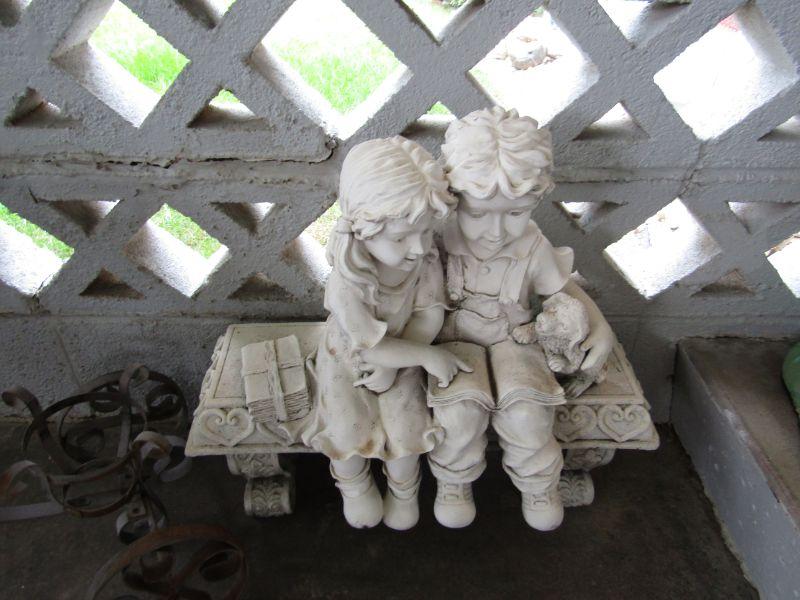 PLASTIC BOY & GIRL ON A BENCH READING A BOOK