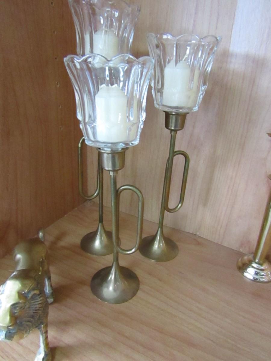 LOT 161 BRASS LION, CANDLE HOLDERS, GRASSHOPPER & MORE