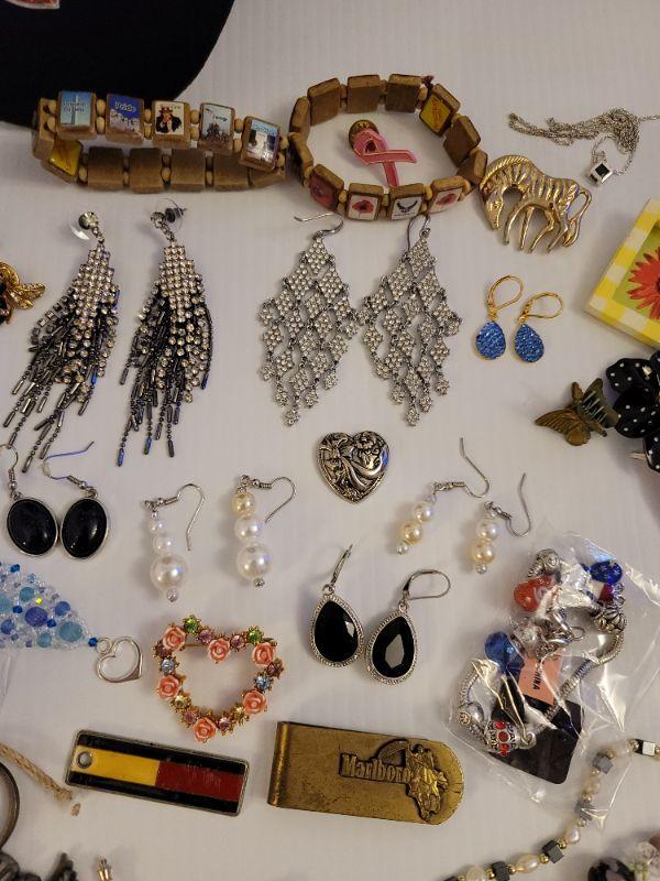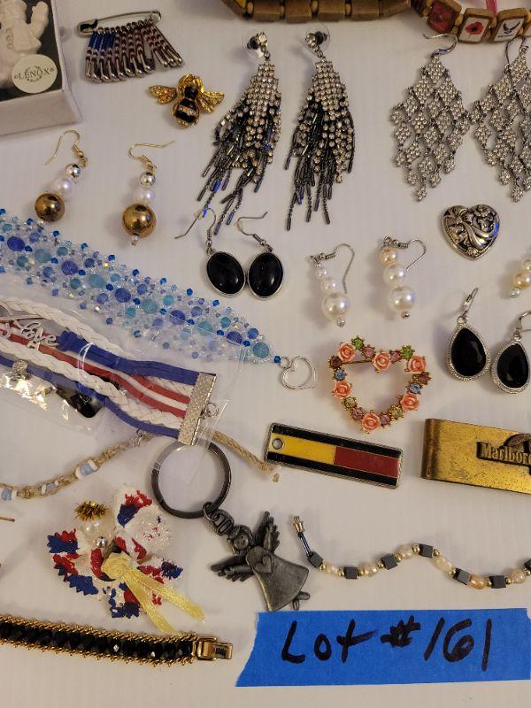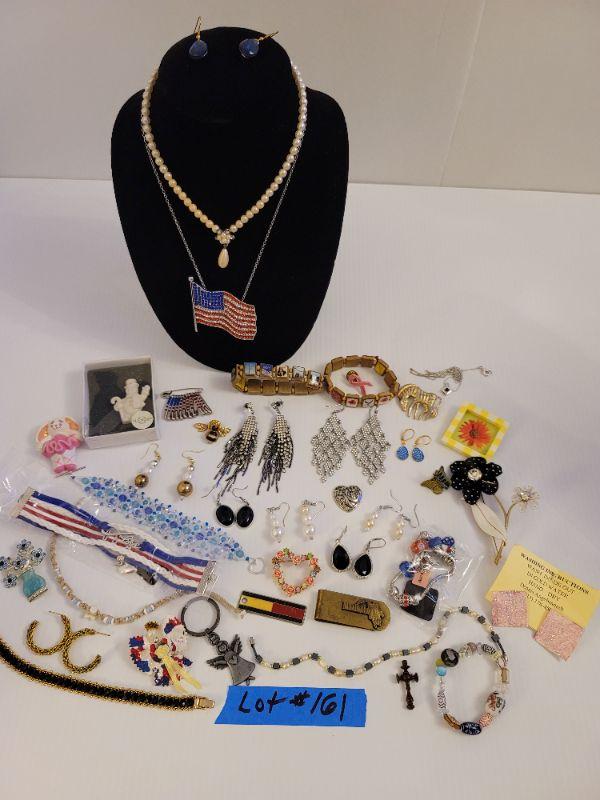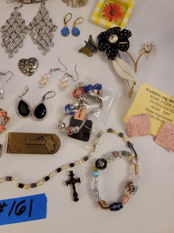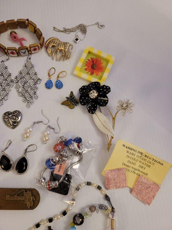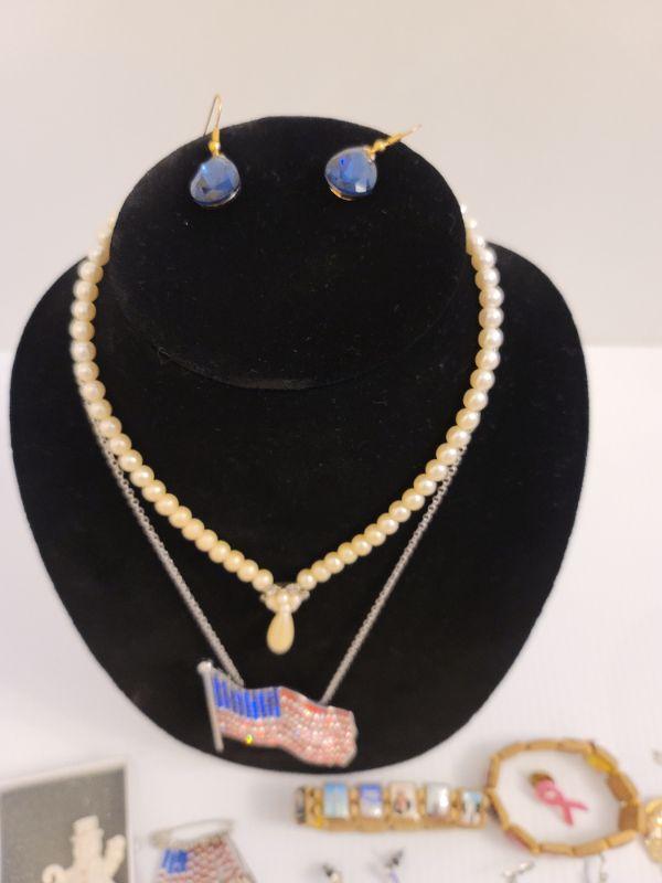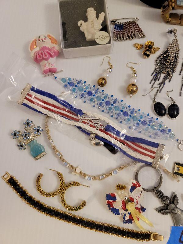 Sterling silver and bead bracelet, assorted costume jewelry, and lenox pin