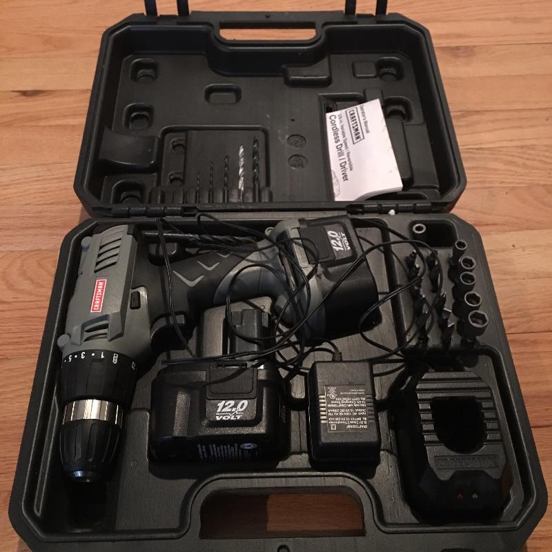 Craftsman 12 volt cordless drill with two batteries, charger and case. Shipping available