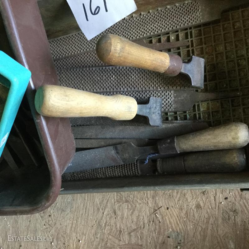 Good lot of all kinds of files with multi-sized handles. Nice selection of chisels and pokers. Some of these tools are older than others but all are in good working condition. This lot is available for local pick up in Hendersonville, NC only.
