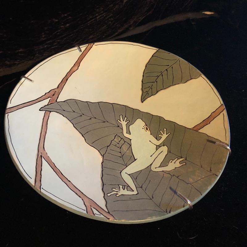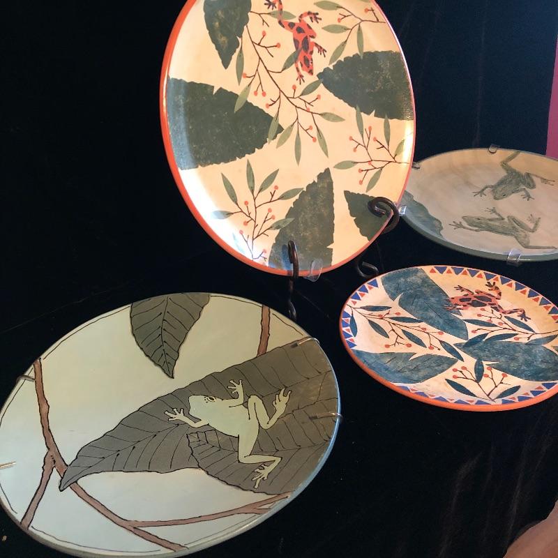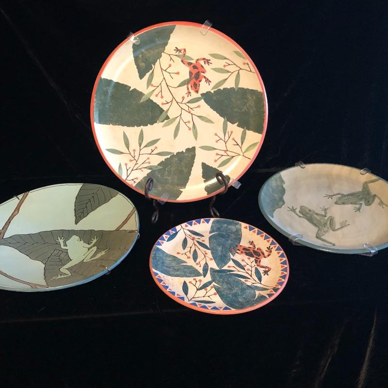 Decorate with these Peterson tree frog plates! This lot includes four large plates. Dimensions are in the photos. Shipping Available.