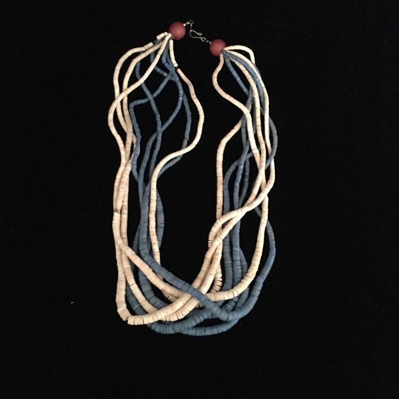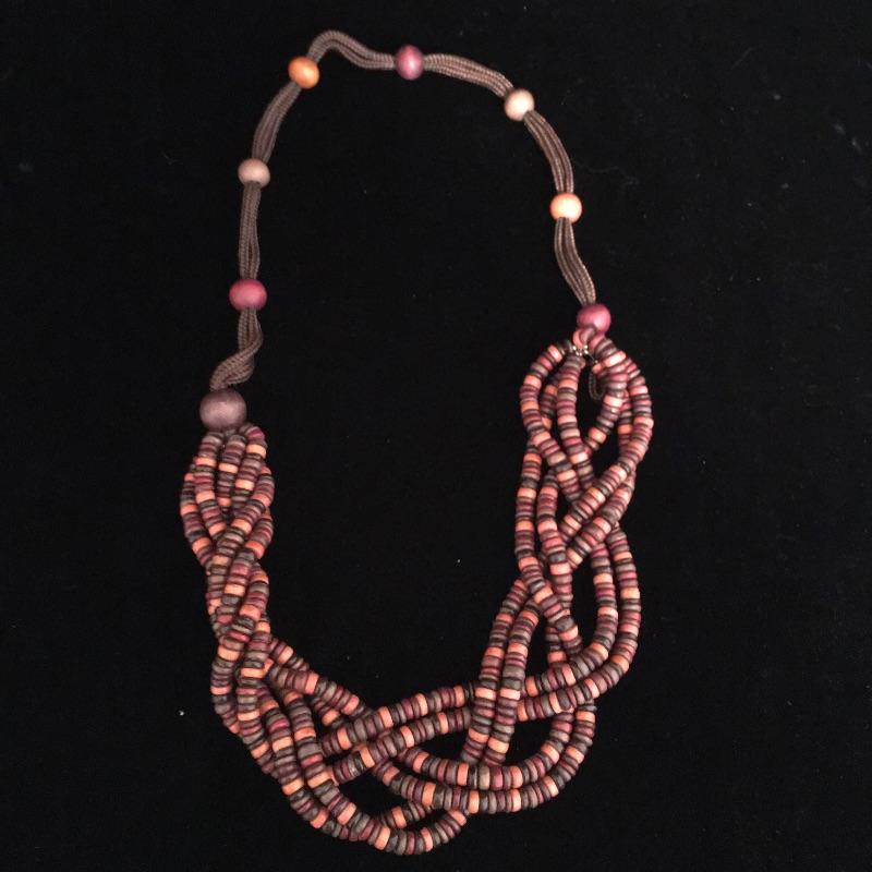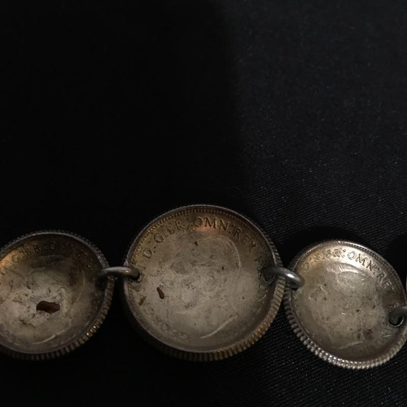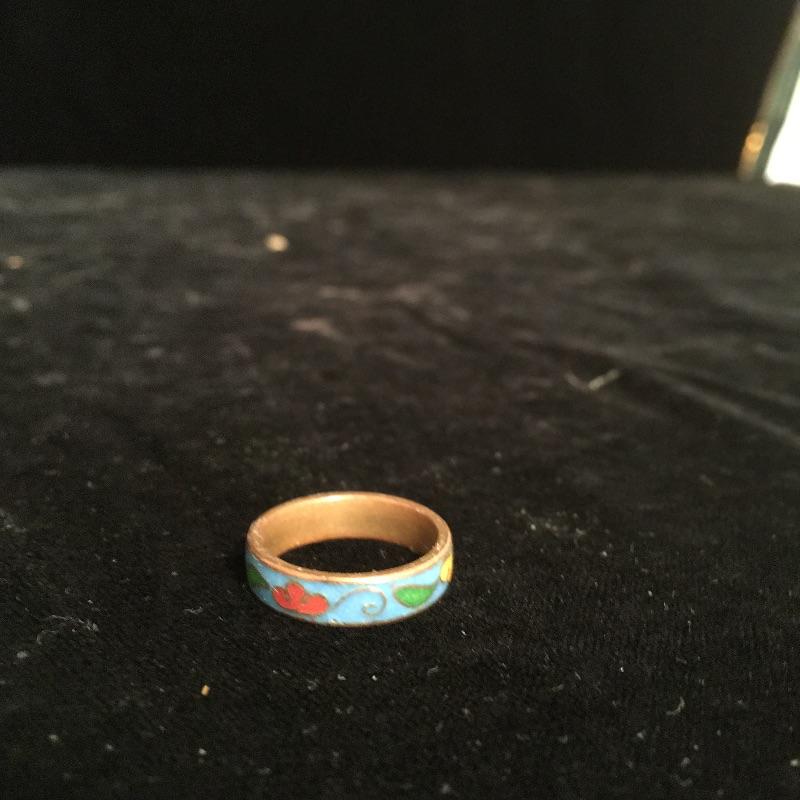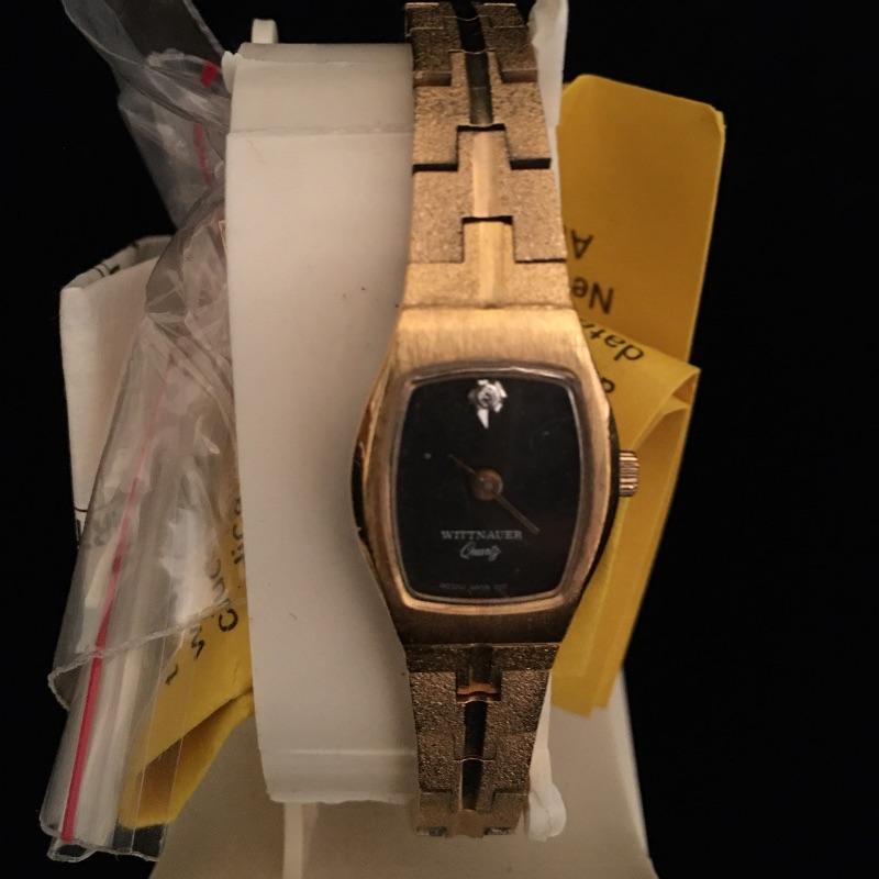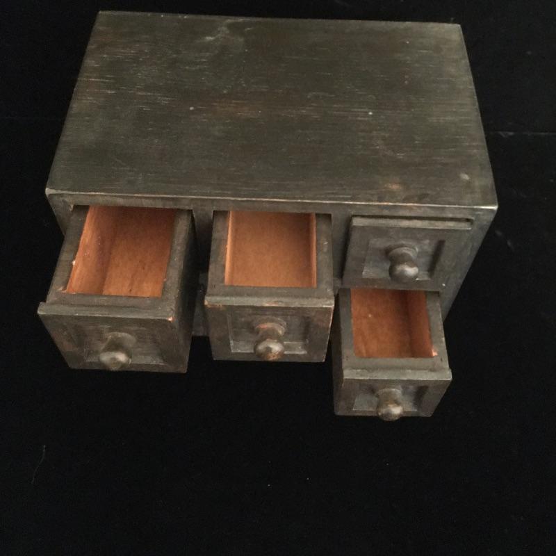 Ladies jewelry and jewelry boxes. Lot includes six drawer box, lidded box, Wittnauer watch, two tone necklace, wooden bead necklace, Australian coin bracelet made from what appears to be 1943 shillings and three pence coins, jade colored pendant, copper ring with enamel design (size 5), cross necklace and more. Watch could not be tested. Six drawer jewelry box measures 5.5” x 8” x 6.5”.