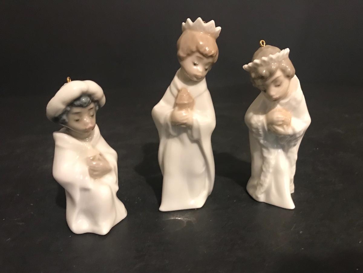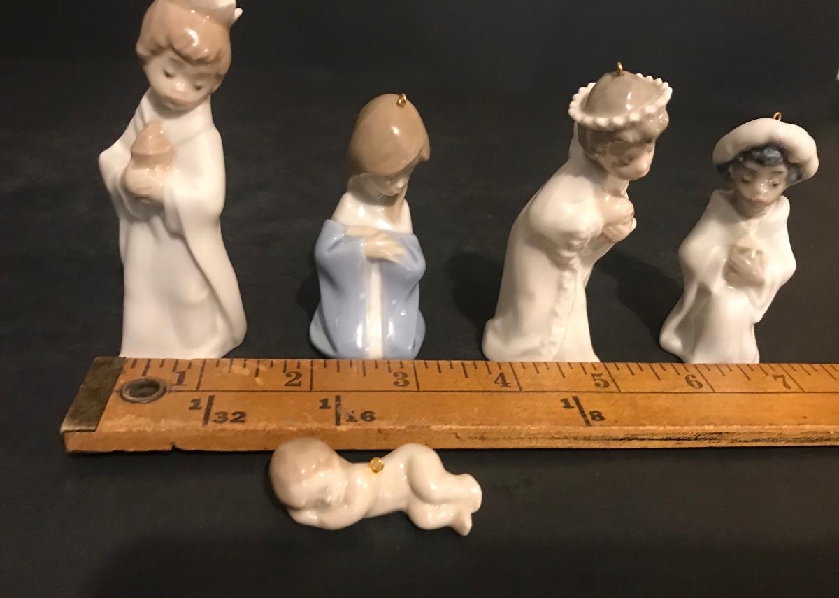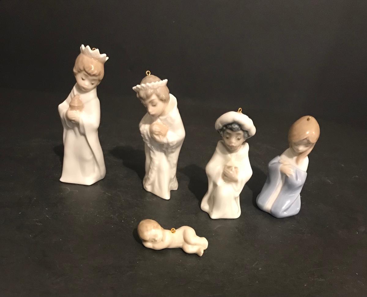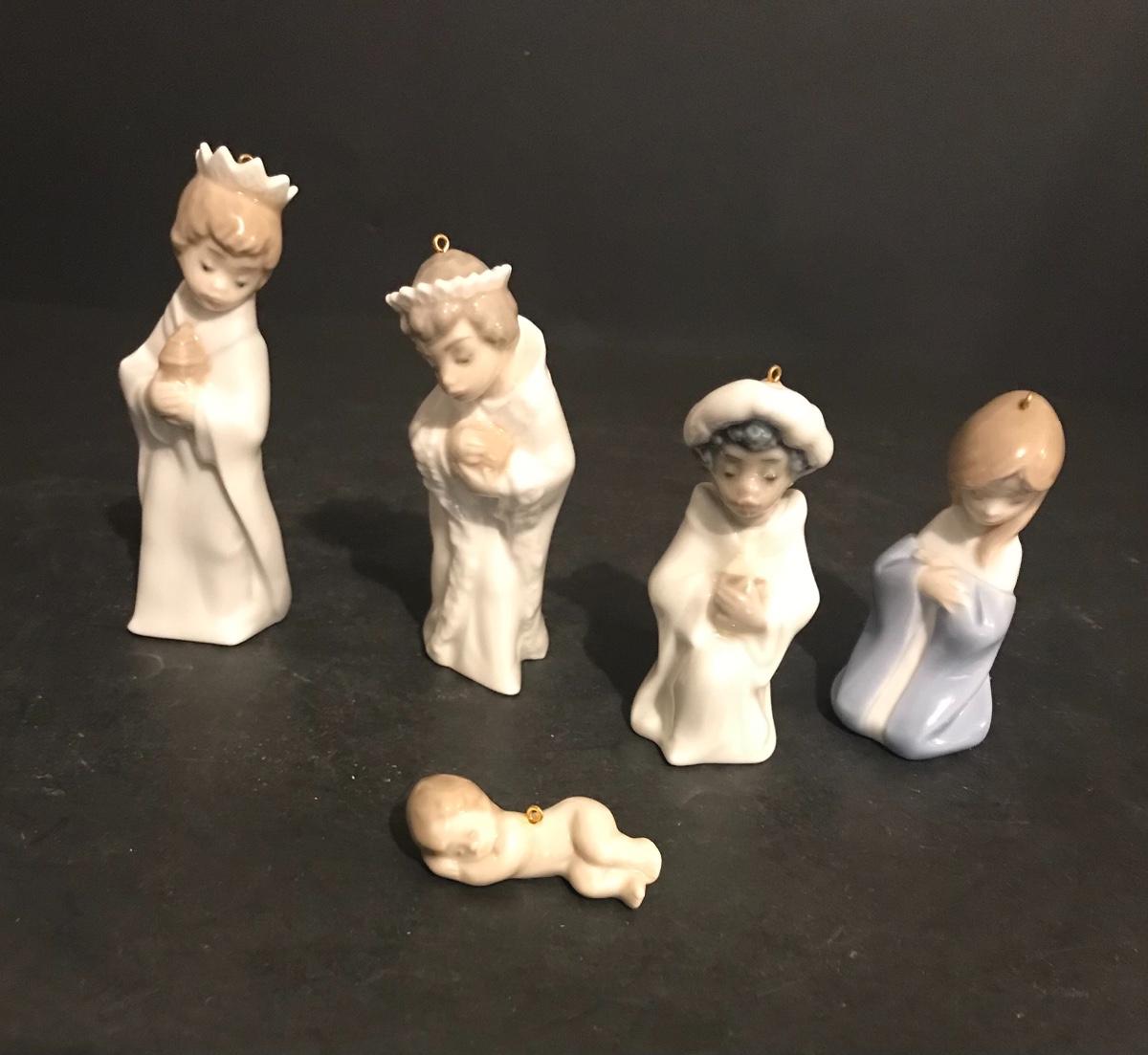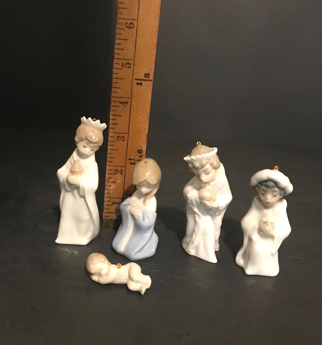 Mini Nativity Christmas Ornaments - Jesus, Mary & Three Wisemen. All Lladros are in excellent vintage condition without original boxes, except where noted. All items have been inspected and any damages or imperfections have been photographed and noted to the best of our knowledge and ability. It is the responsibility of the buyer to inspect all pictures, as they are the best representation of the items. The pictures show condition, measurements if taken, and what is included in the lot. Upon pickup, it is the responsibility of the buyer to inspect their items prior to leaving the premises. Once the items leave the premises, there will be no refunds or returns. Buyers are also responsible for bringing their own boxes and packing materials for their items. Thank you.