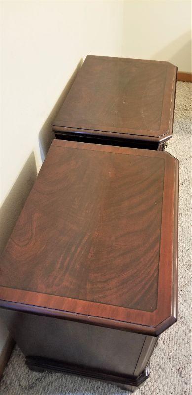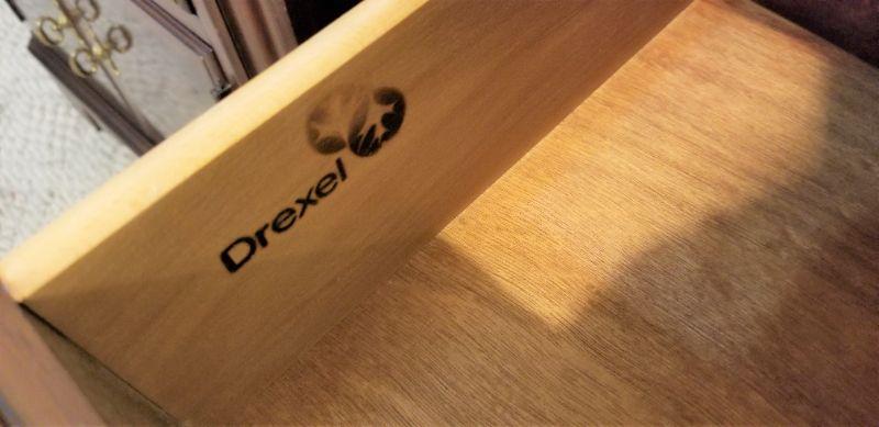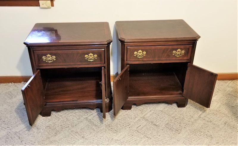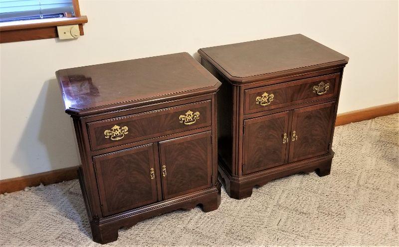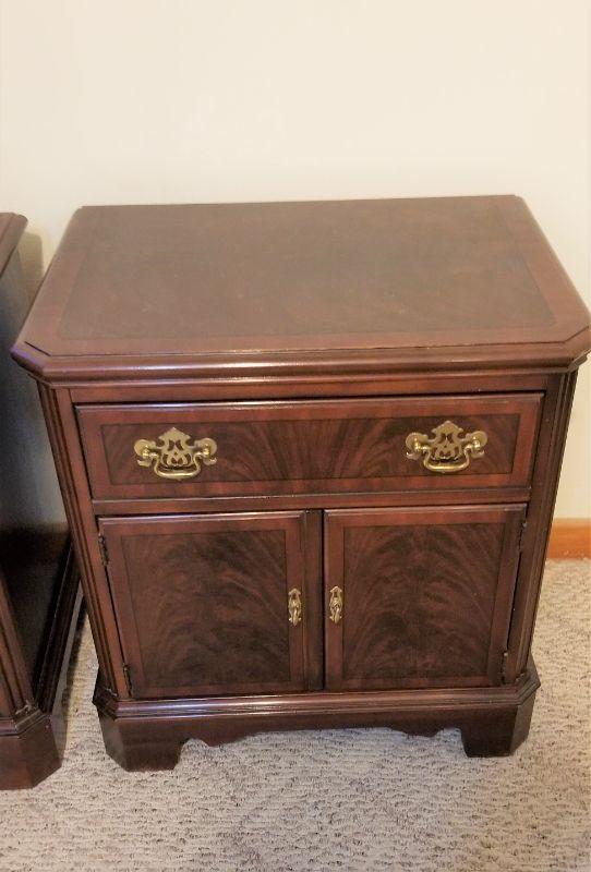 These nightstands match the other Drexel bedroom pieces we have posted. One drawer with storage underneath. 17" deep, 24" wide, 25" tall. Good used condition.