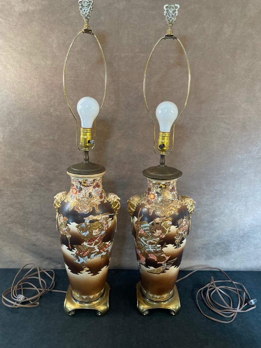 Lot 161. Pair of Porcelain Satsuma Lamps