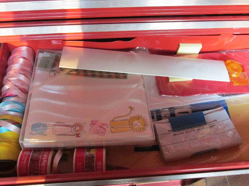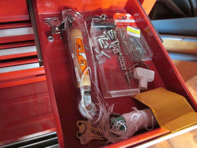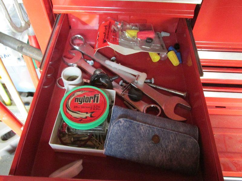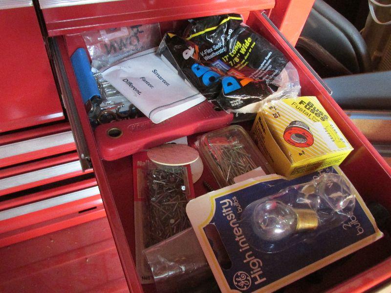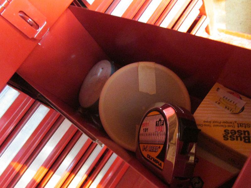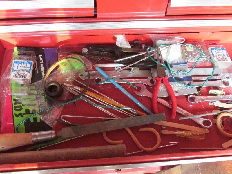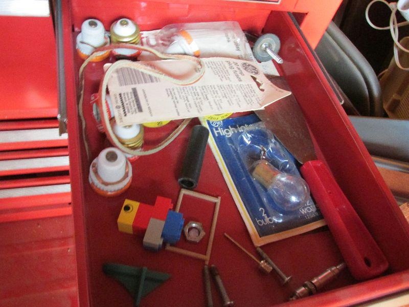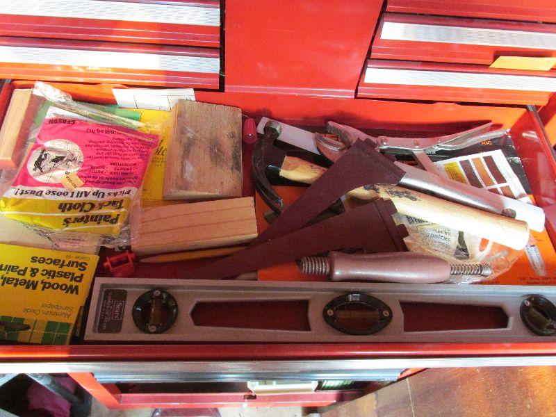 Sears Craftsman Home Tool Storage Tool Box. Model # 65419. Drawers are filled with numerous tools and other stuff.