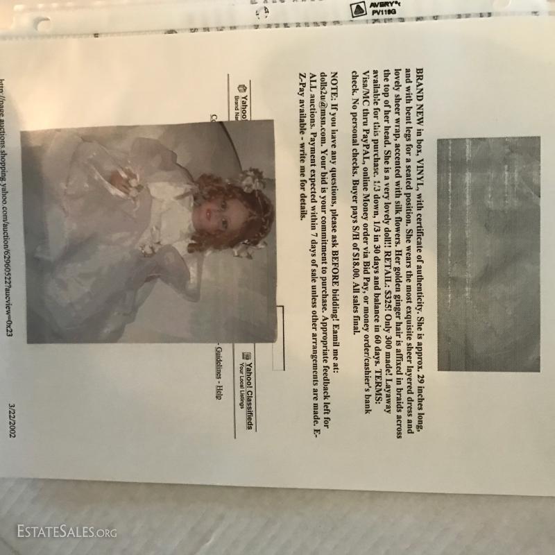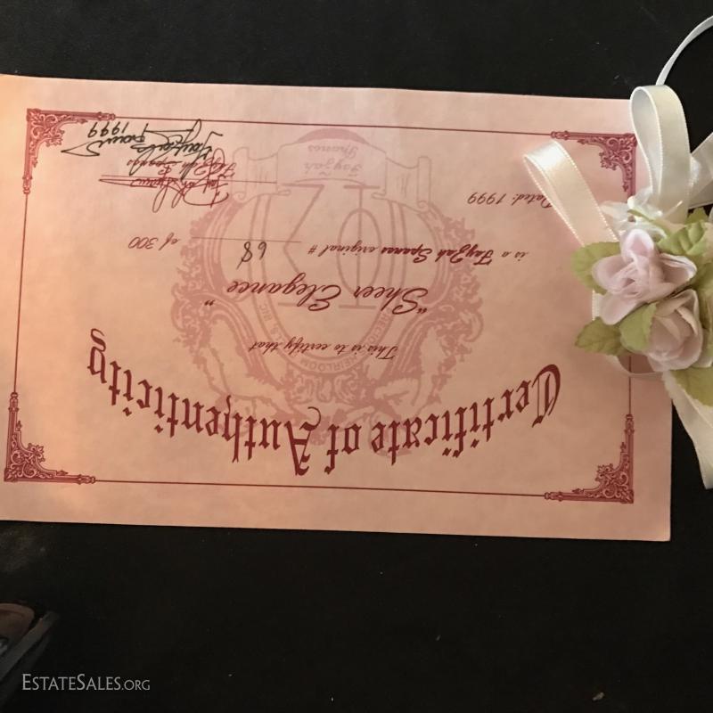 Sheer Elegance is 29” tall and limited edition #68 of 300. She comes in original box with Certificate of Authenticity. See photos for details. Doll ships from Columbus, North Carolina or local pick up
