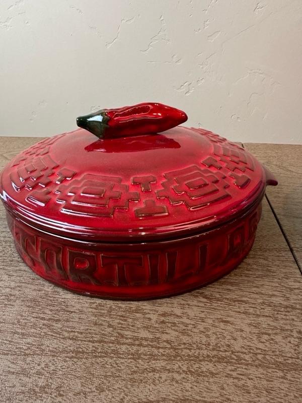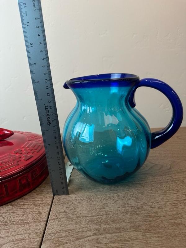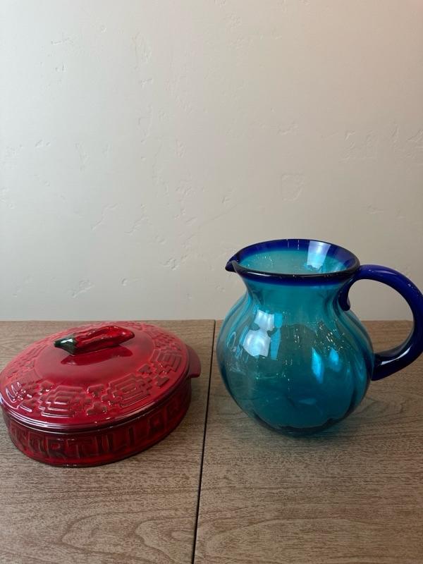 Lot 161 tortilla warmer and hand blown glass pitcher