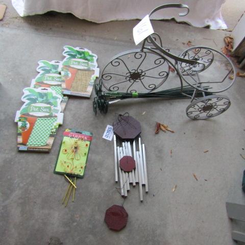 TRICYCLE PLANT STAND, POT SOX, WINDCHIMES & PLANT PROPS