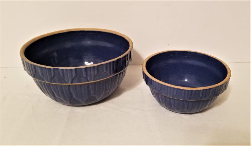Lot #161 Two Beautiful Antique Stoneware Mixing Bowls - Cobalt Blue