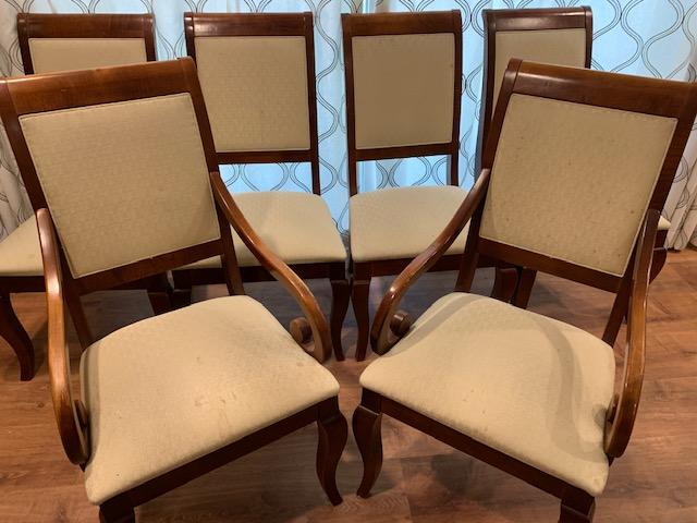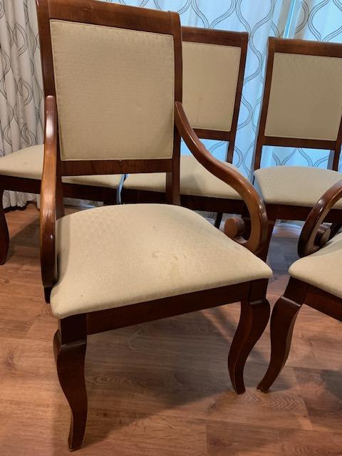 LOT 160  Upholstered Wood Frame 6 Dining Table Chairs
