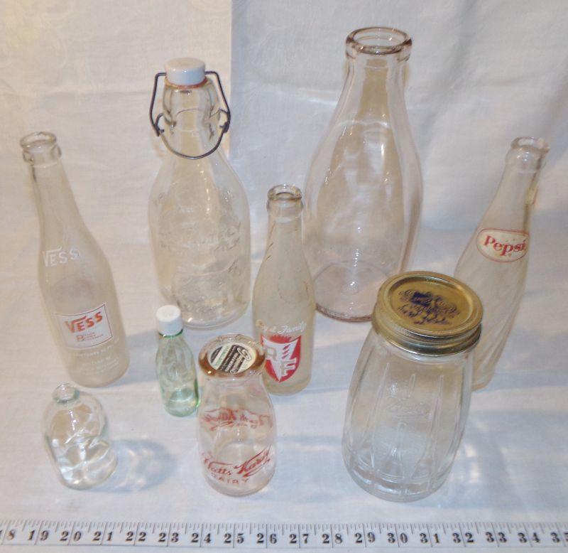 THE LARGEST BOTTLE READS, "HALF GALLON LIQUID" & "SEALED BB48" ALONG THE BOTTOM