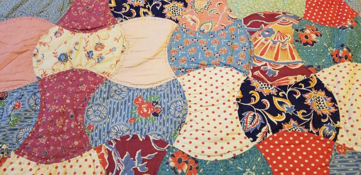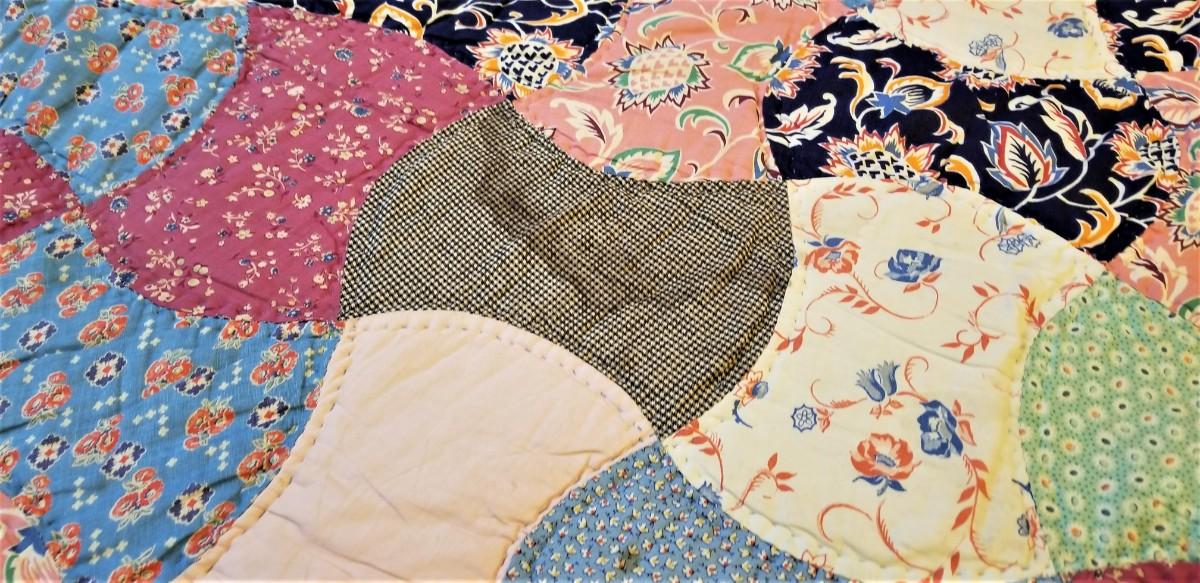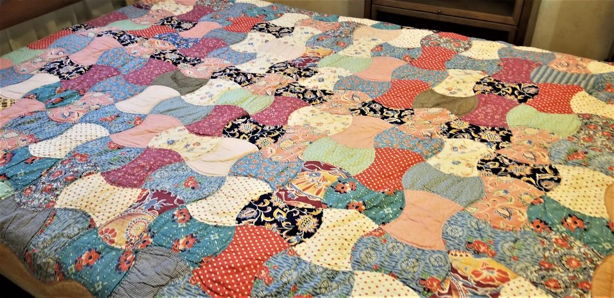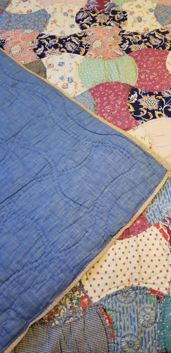 This is one of the older quilts in the sale - note the smallish stain - we have not tried to wash. 68.5" across, 86" long.