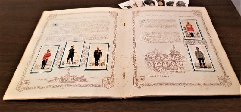 These cards were included in every package of Player's Cigarette and were avidly collected at the time. You get two complete sets - the first (shown in the first photo) is a set of 50 cards showing various head gear used in the British Army - all in color. The second set is also complete and is in the book - Uniforms of the British Empire (overseas units). 24 pages, some foxing.