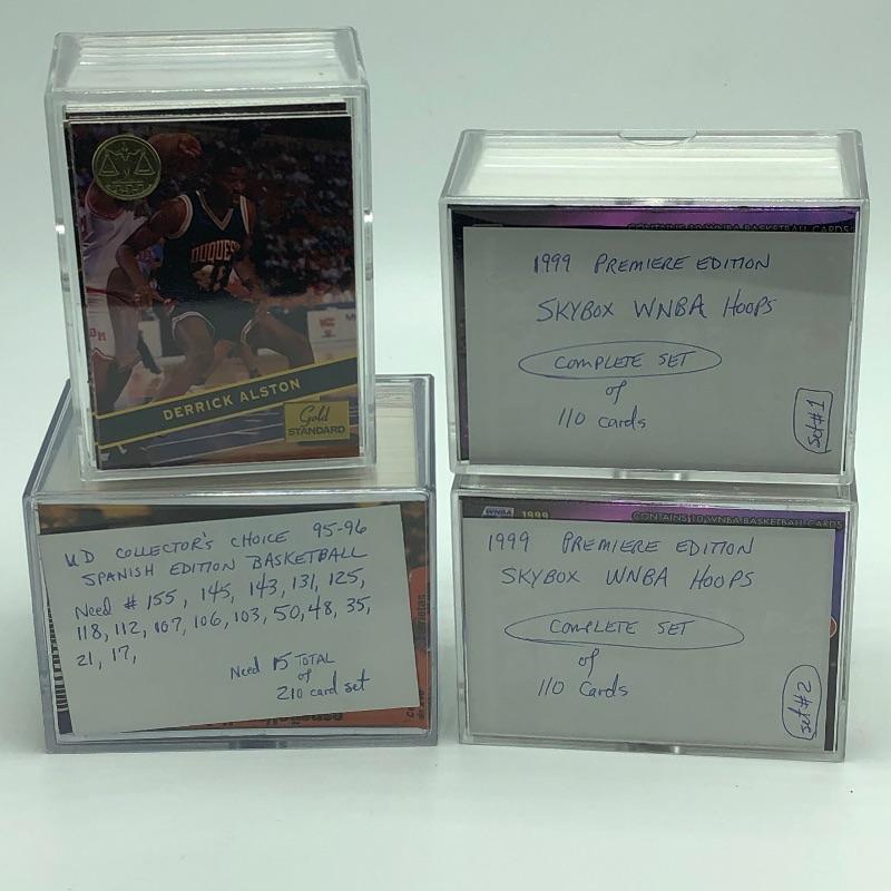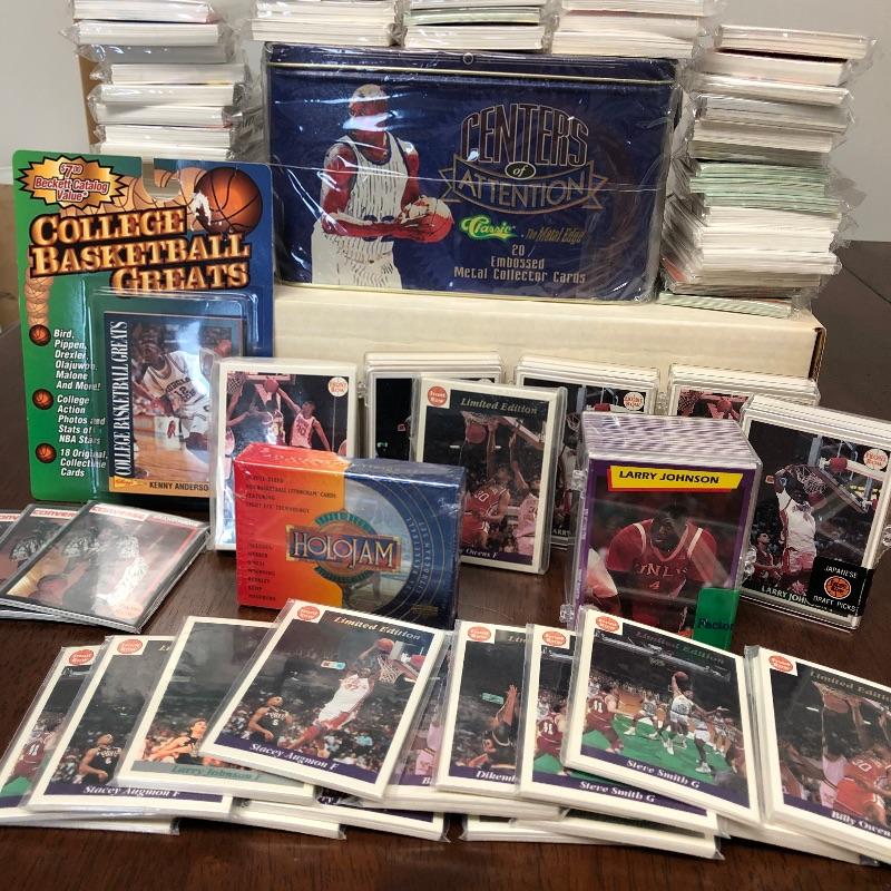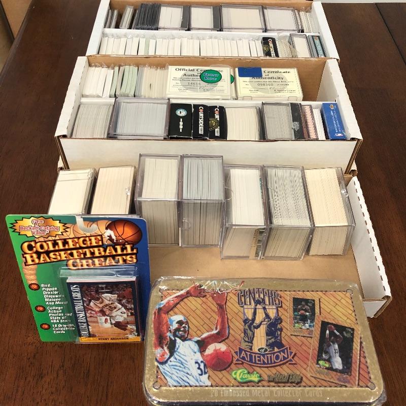 All Basketball fans front and center! This all star line up of unopened collector card sets many with COA is truly amazing. Lot also includes many single cards and large sets with notes from the late owner included please see photos.