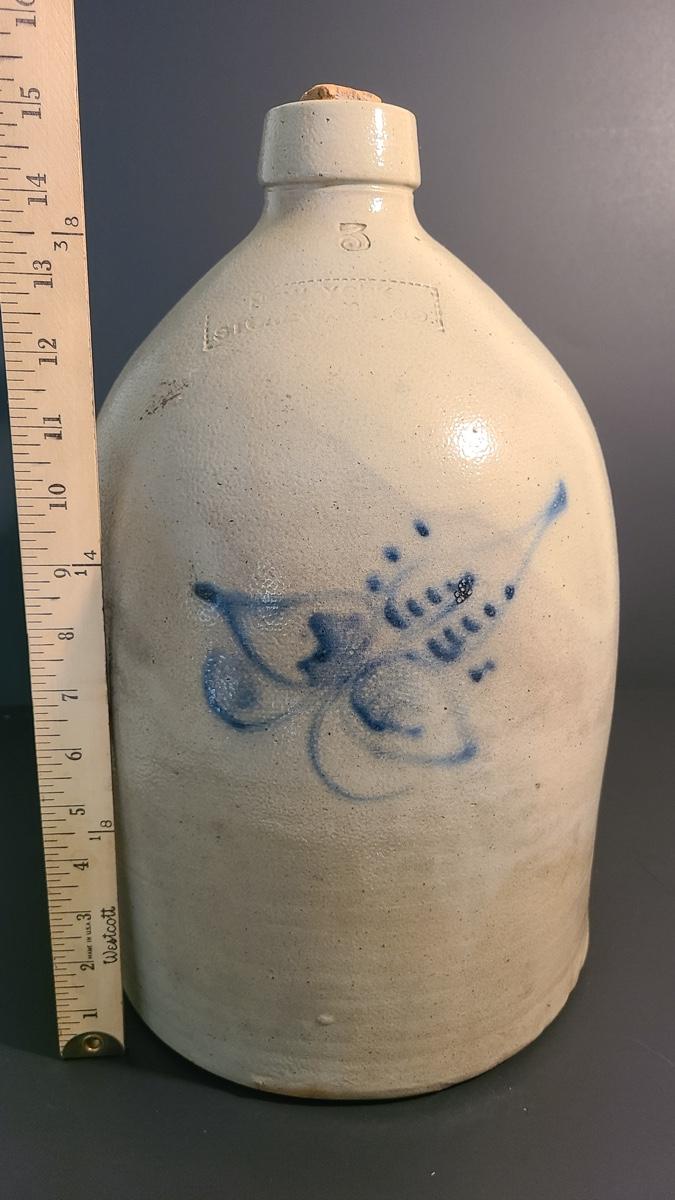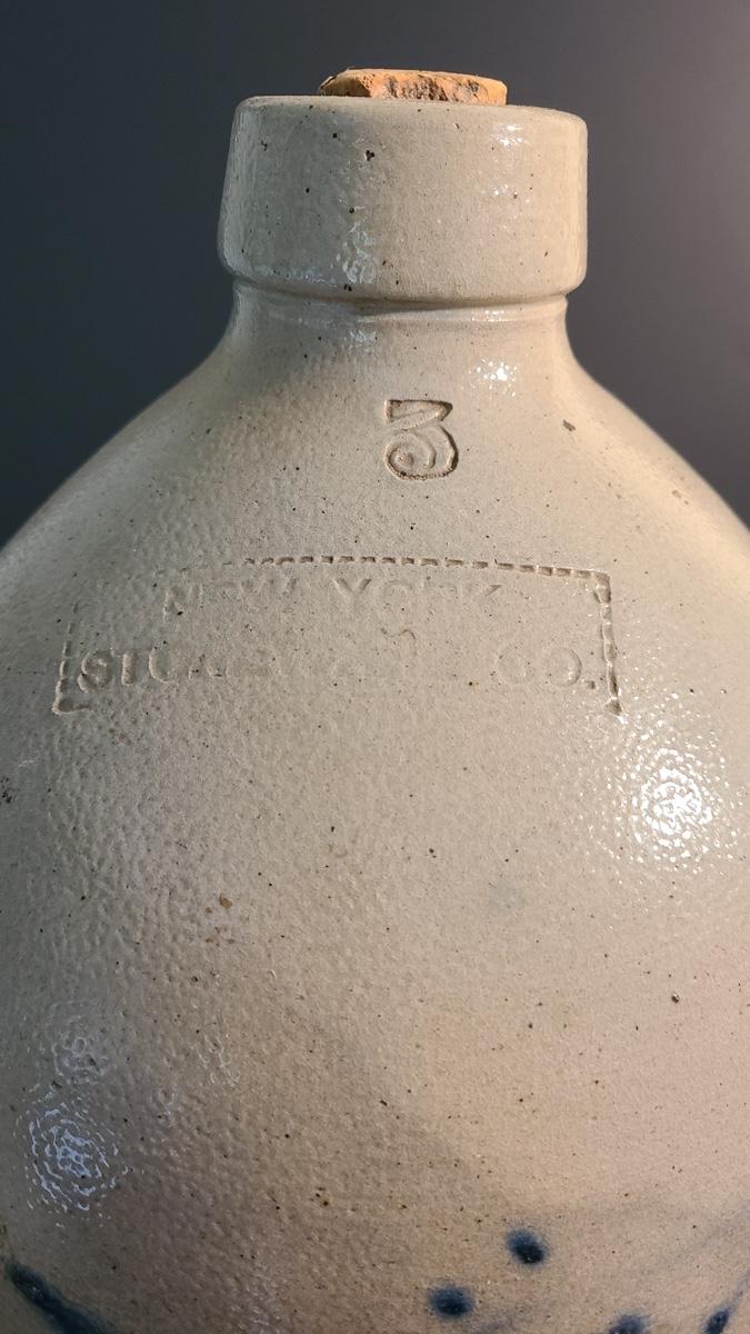 Lot 162: New York Stoneware Co #3 Salt Glaze Jug Cobalt Blue Design