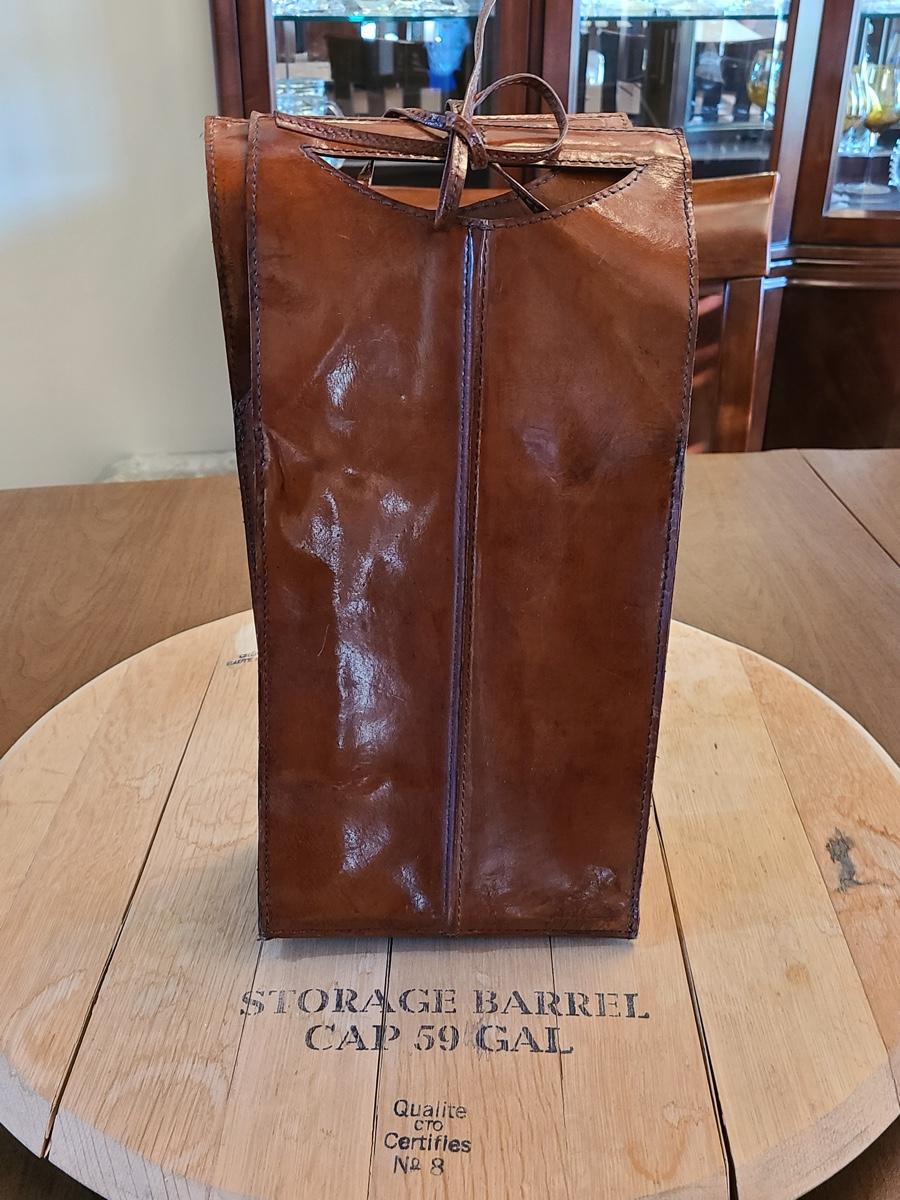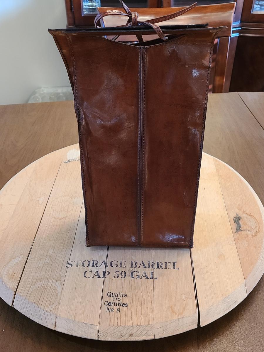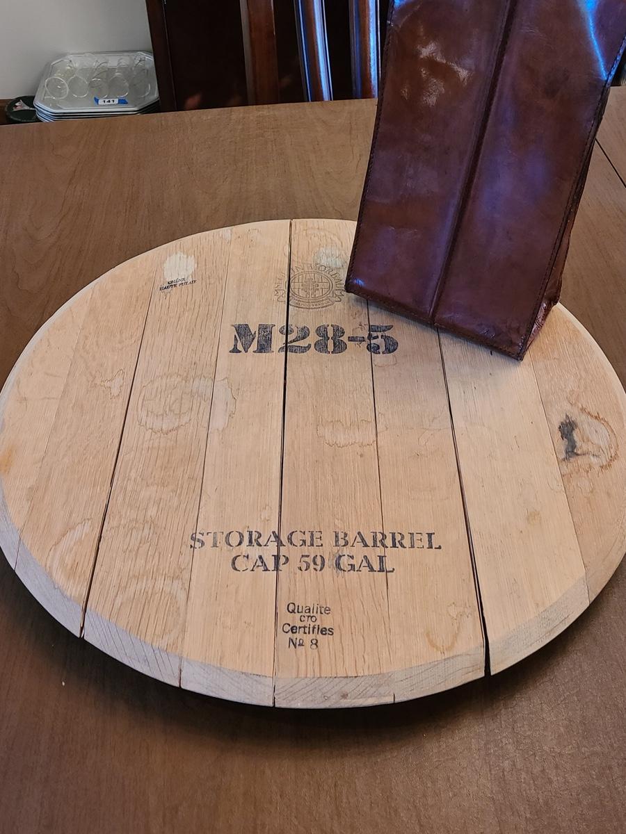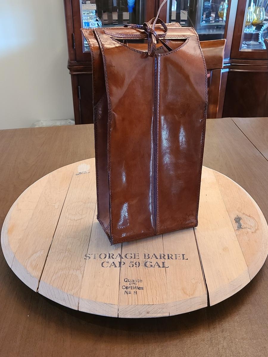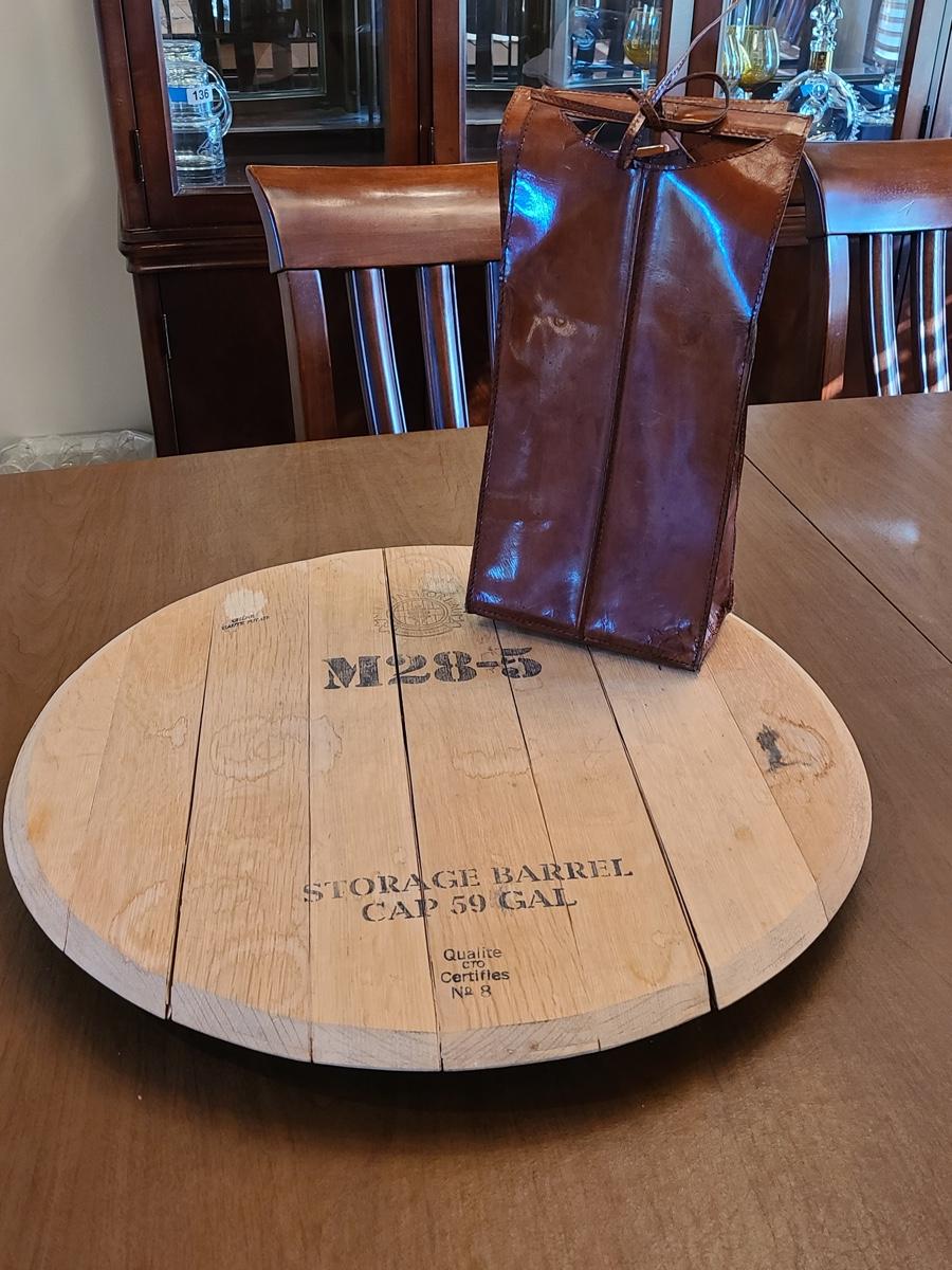 Lot 162: Leather Wine Satchel, and Wine Barrel Top Lazy Susan